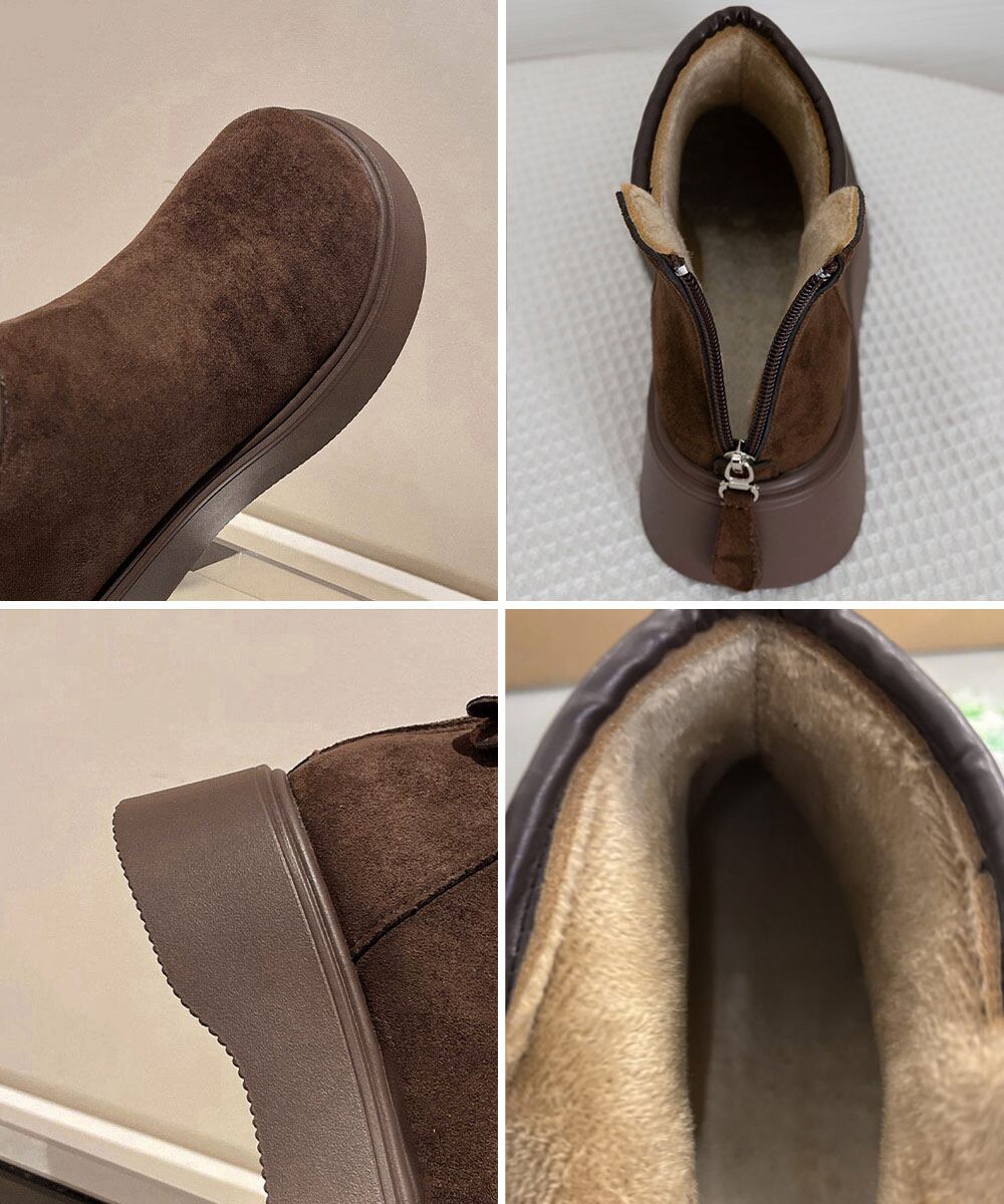 レディース カジュアルムートンブーツ あったか防寒シューズ ラウンドトゥ冬靴 後ろジップブーツ 歩きやすい秋冬美脚脚長