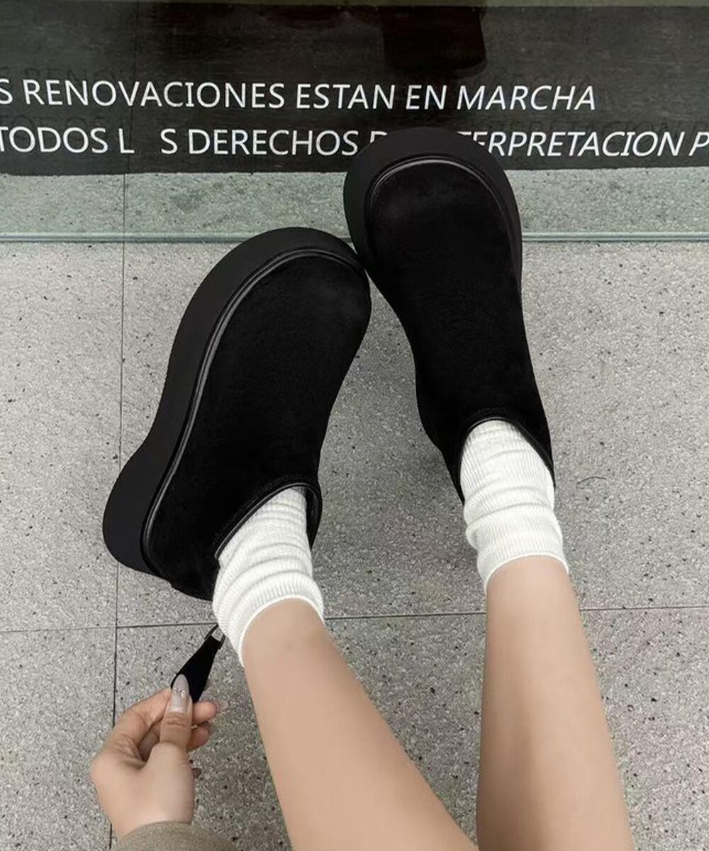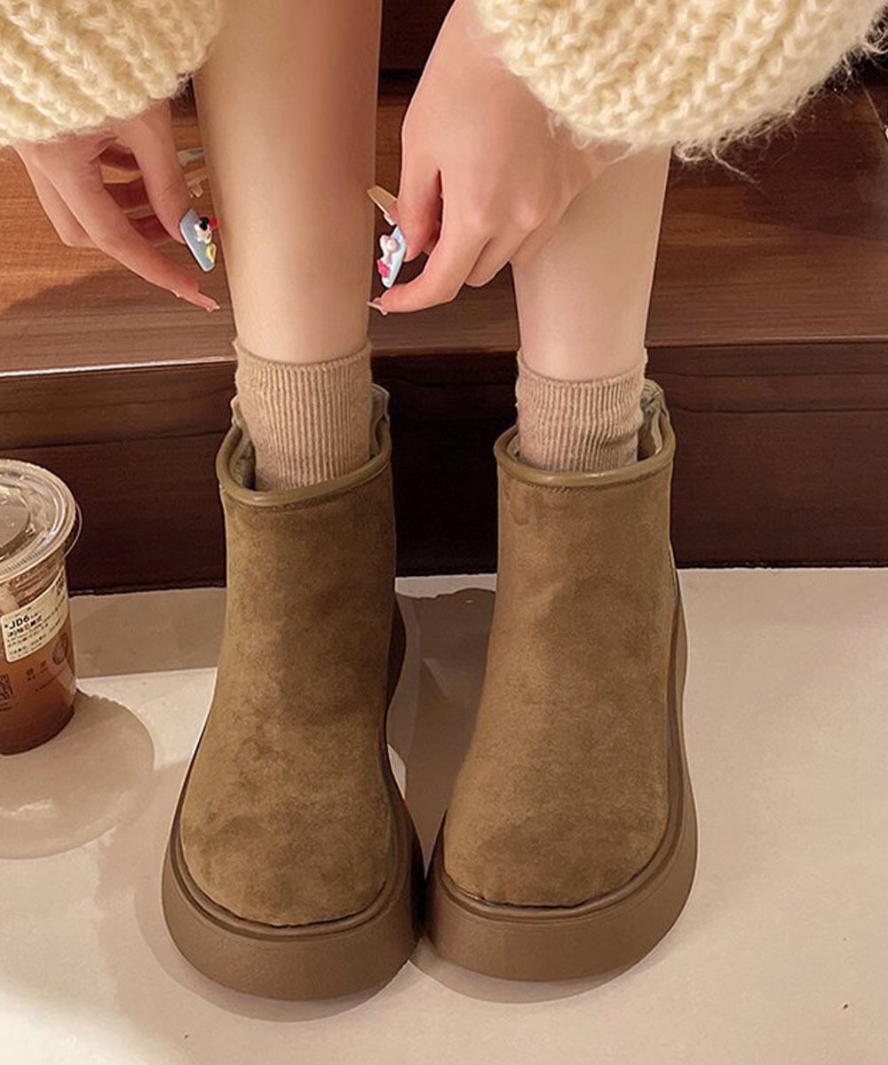 【日本倉庫即納】 スエードタッチ厚底ショートブーツ 裏起毛