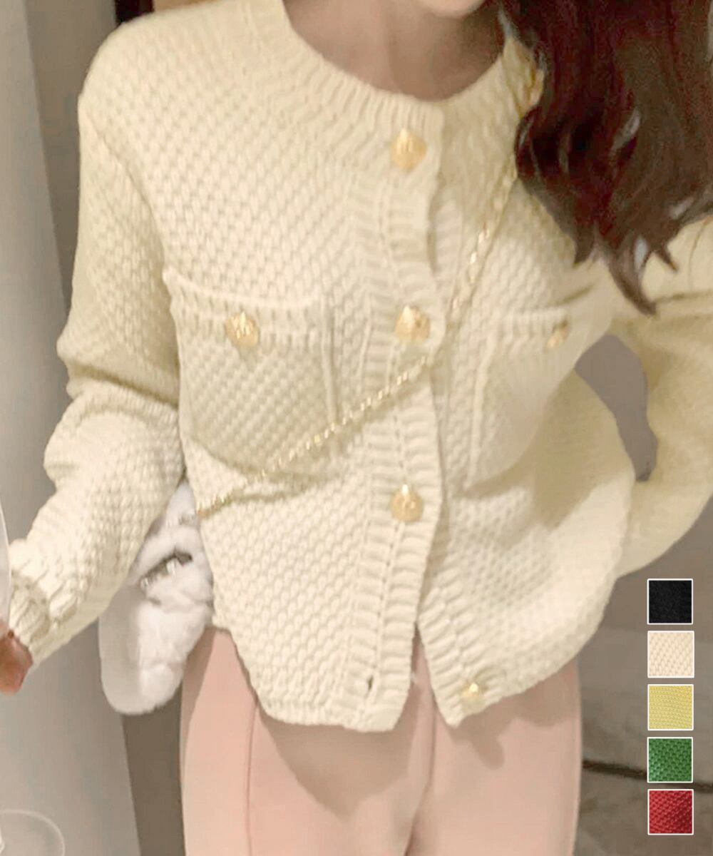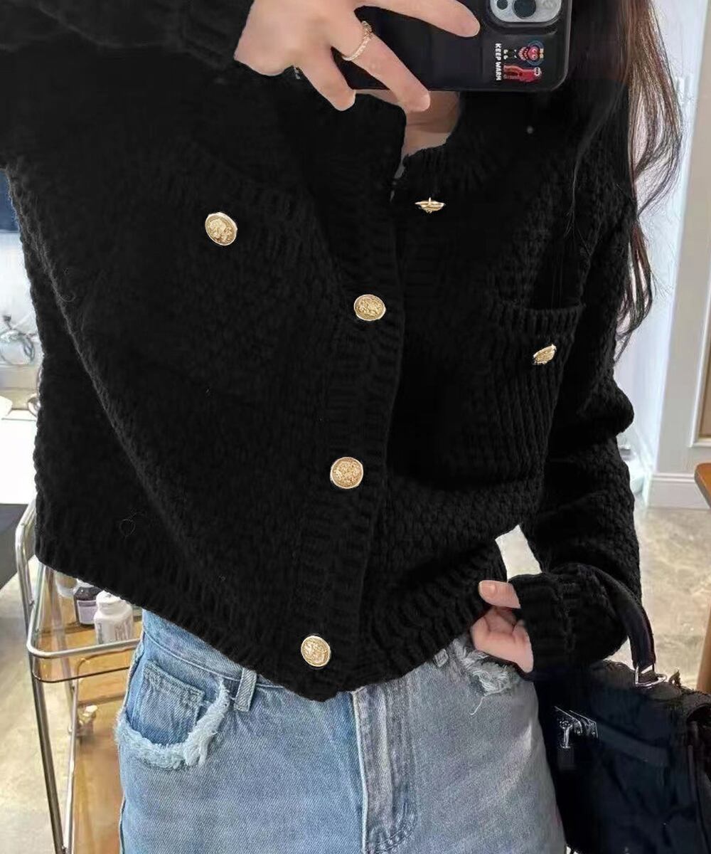 【日本倉庫即納】 ゴールドボタンニットカーディガン 韓国風