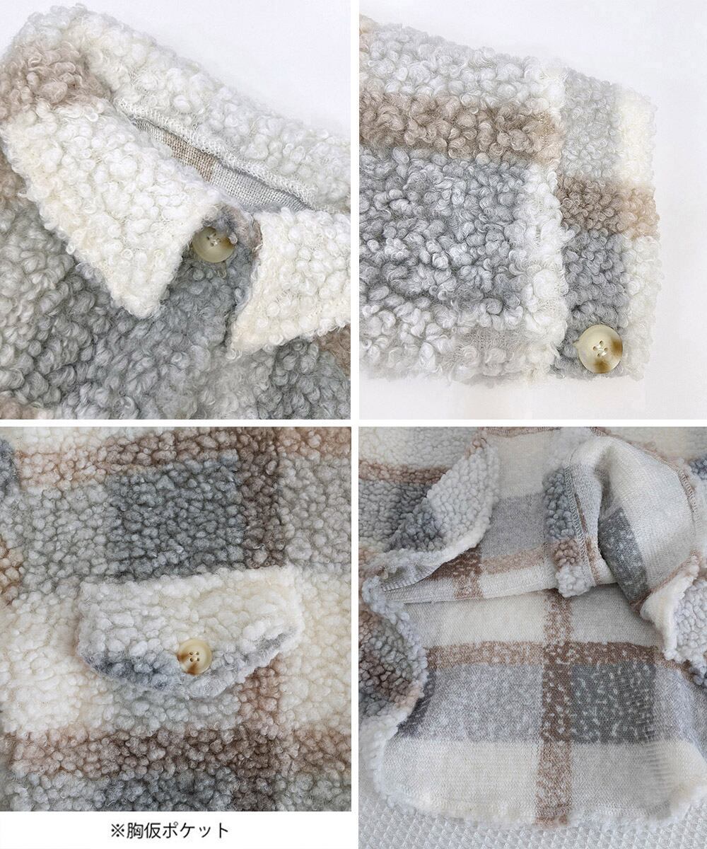 チェック柄のもこもこボアが目を引くロングシャツジャケット。