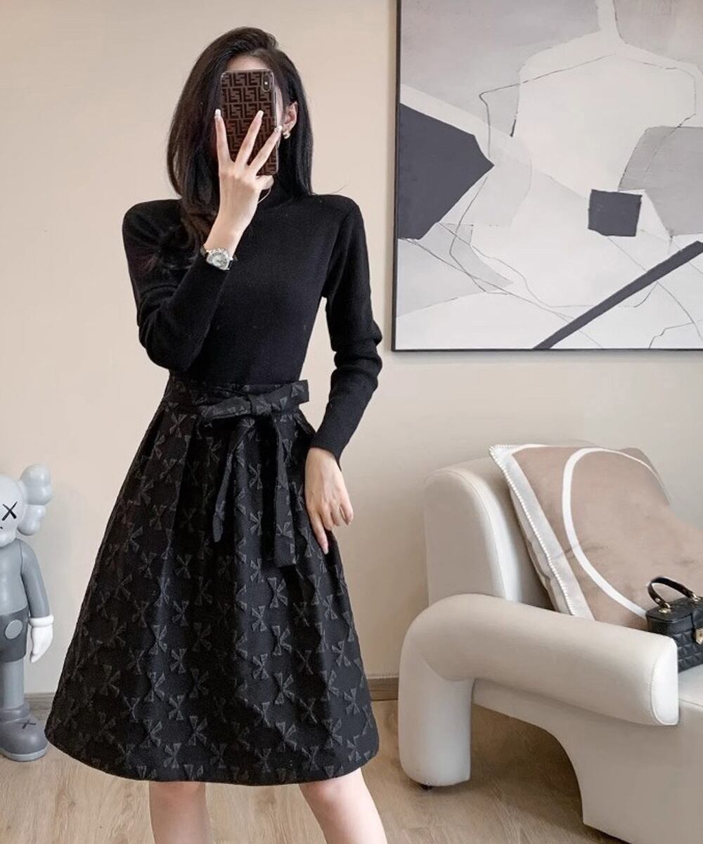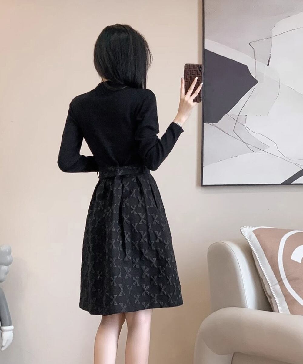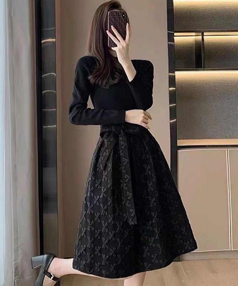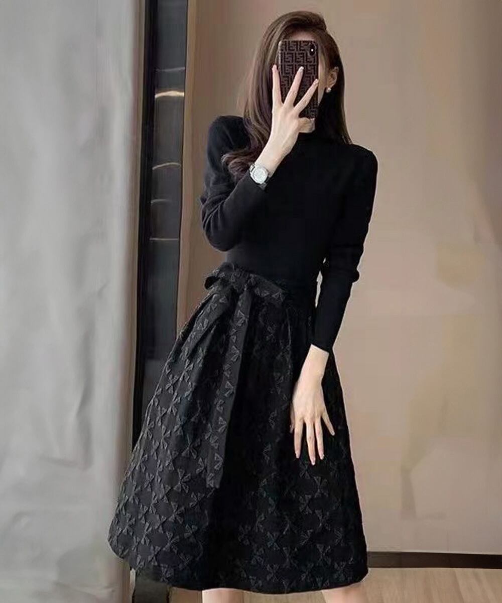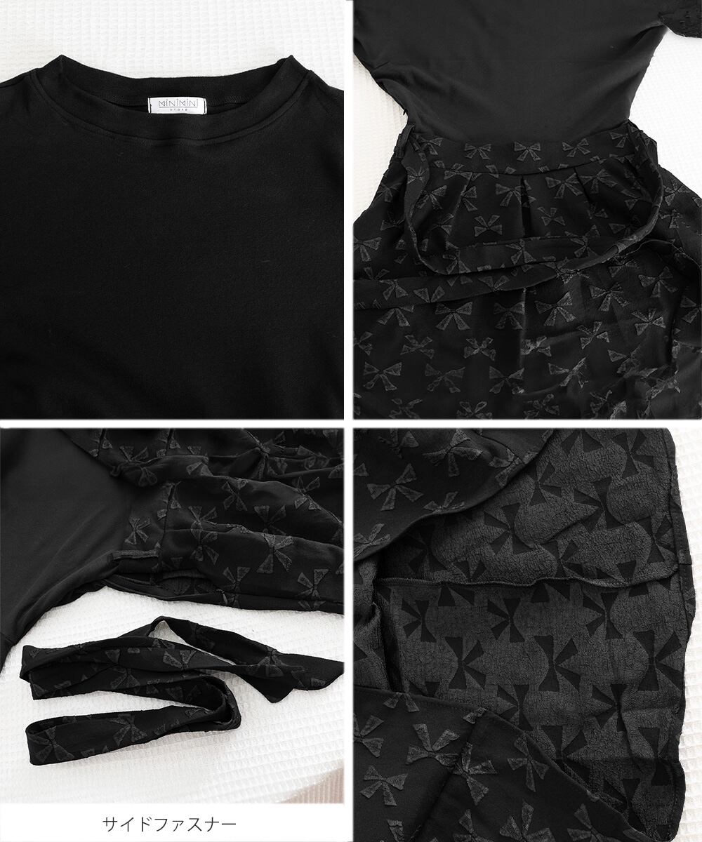 着回しワンピ異素材 インナーワンピ上品 黒ワンピ体型カバー