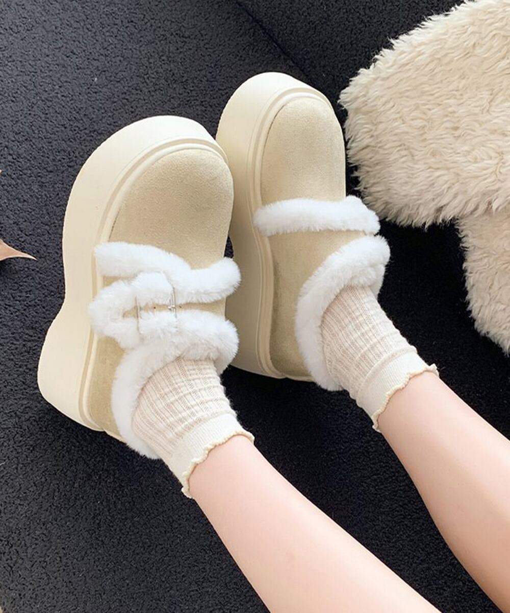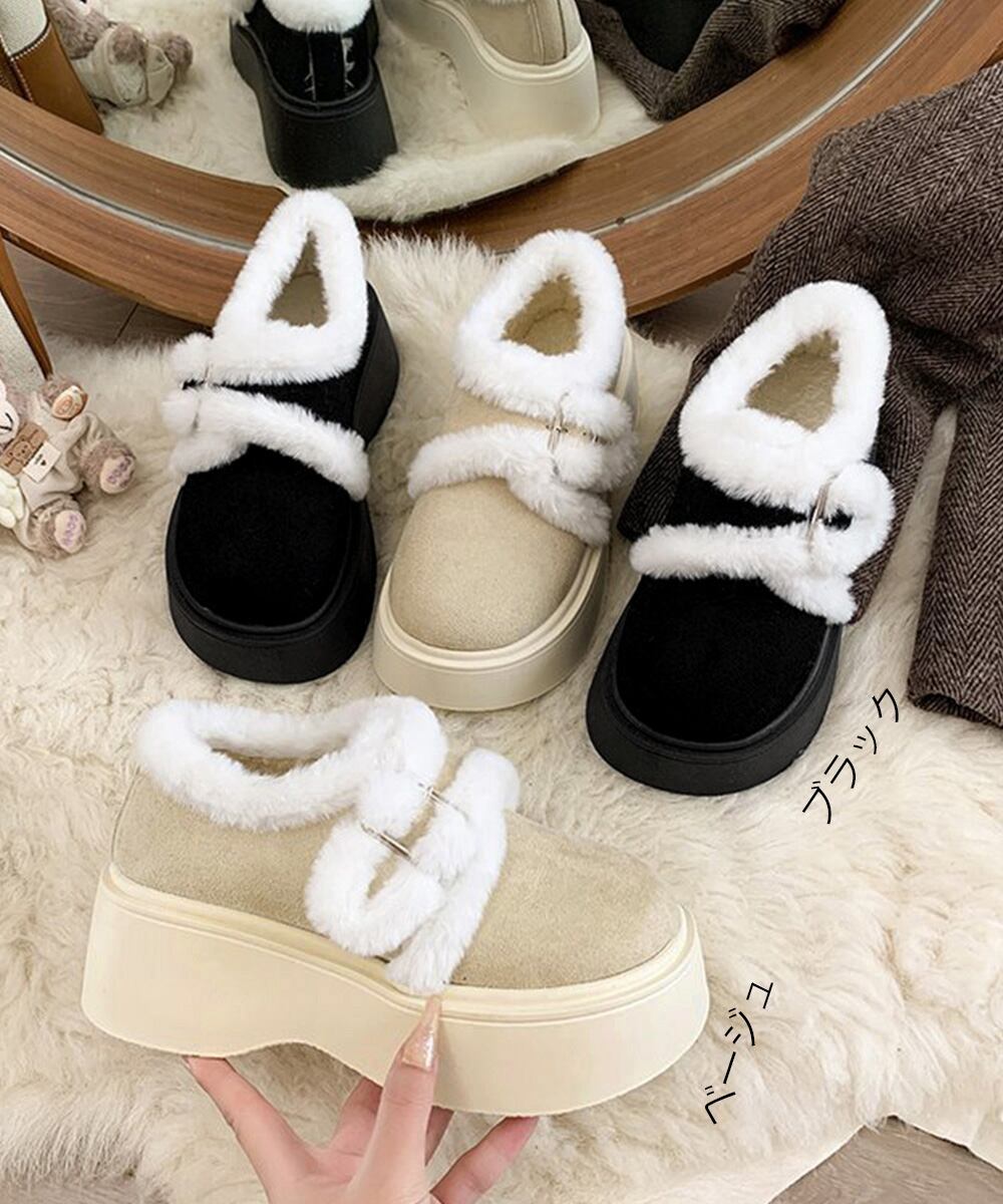 【日本倉庫即納】 もこもこファー厚底ムートンシューズ裏起毛