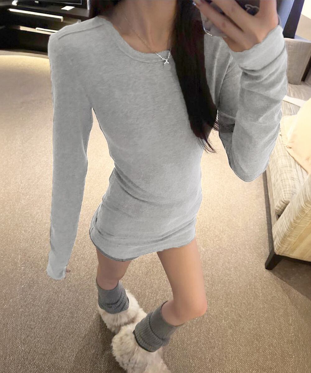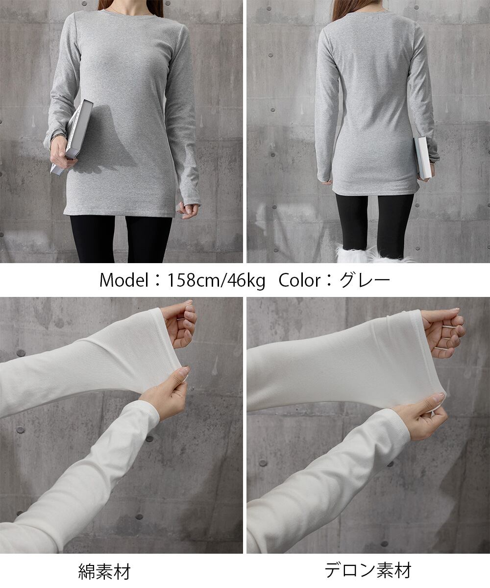 レディース ベーシックロンティー 細見えチュニックTシャツ 柔らかいインナートップス カジュアルカットソー ティーシャツ