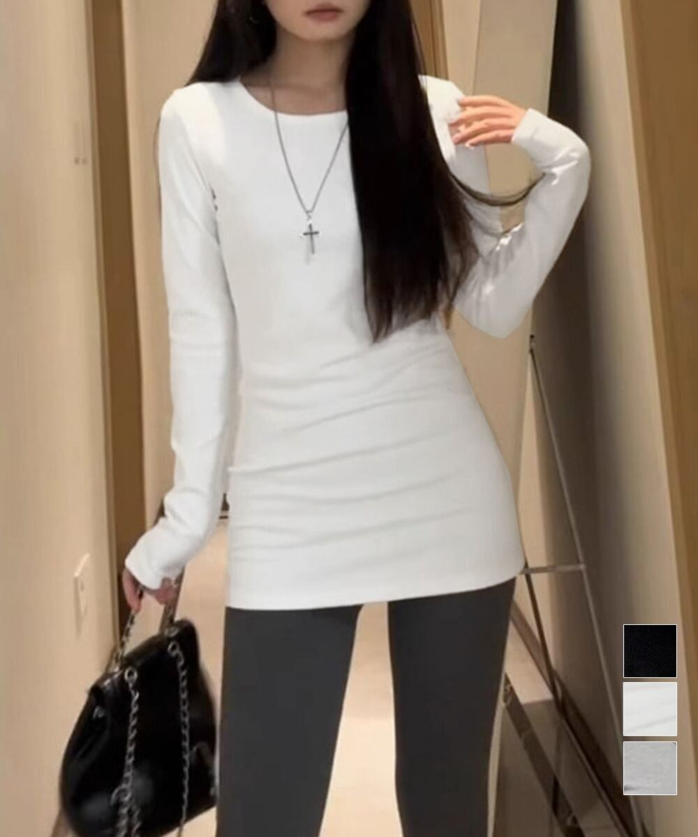 【日本倉庫即納】 ロングTシャツ 重ね着フィットカットソー
