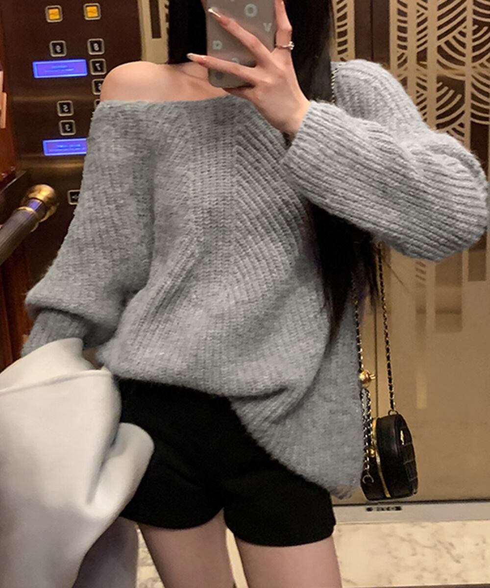 【日本倉庫即納】 ビッグリボンタイニットプルオーバー韓国風
