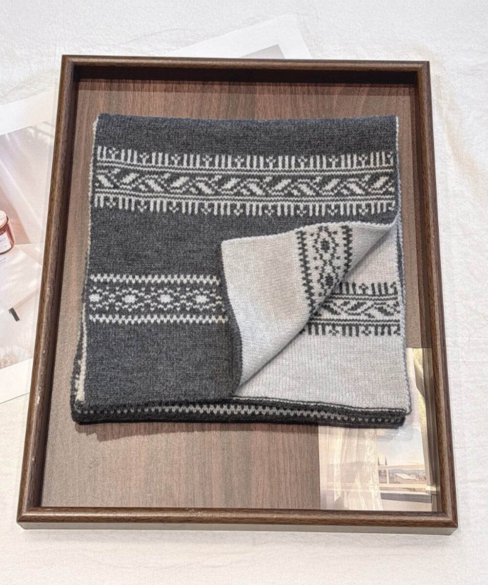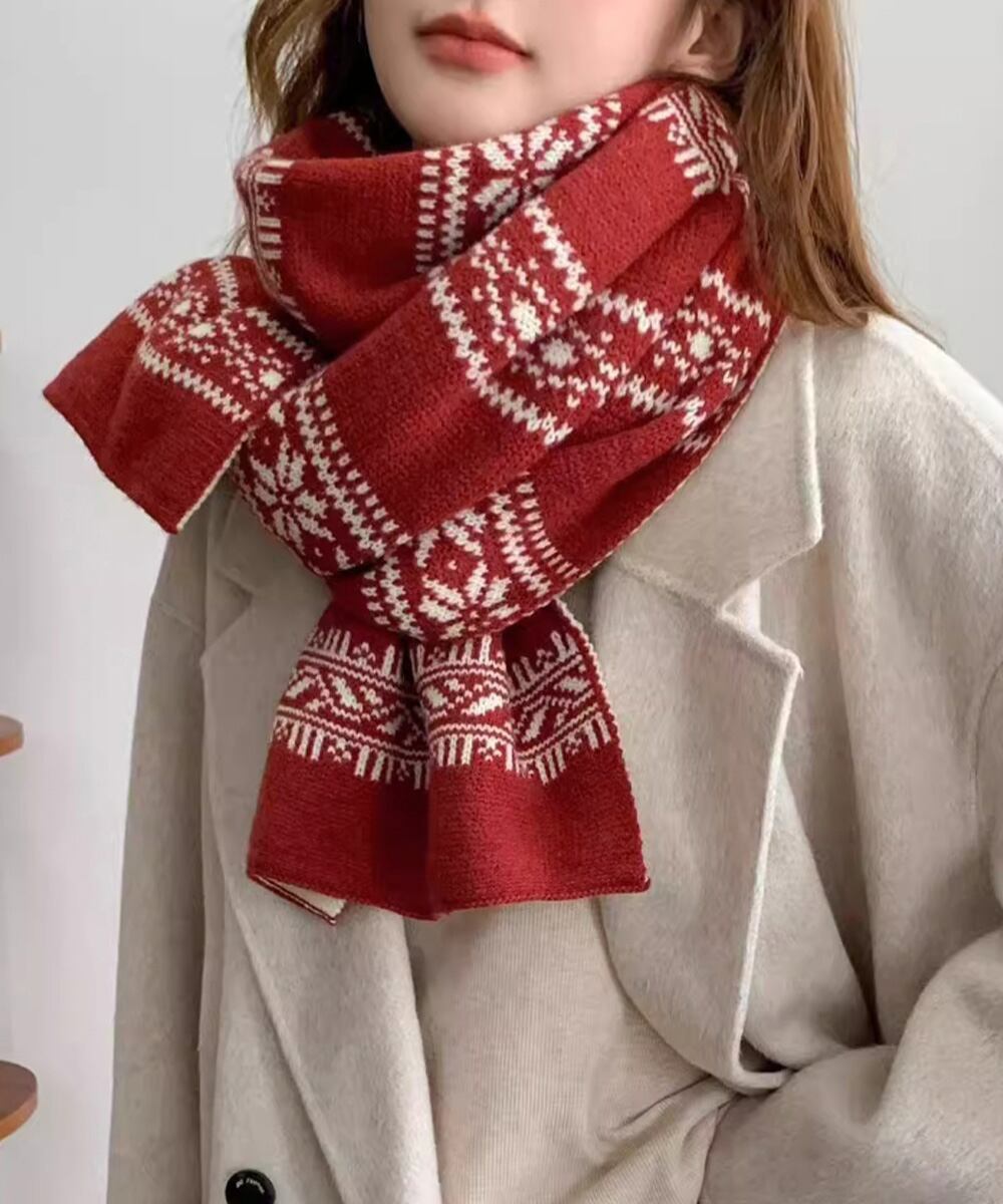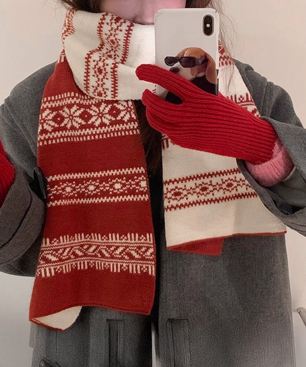 冬のスタイリングにぴったりなノルディック柄ニットマフラー。