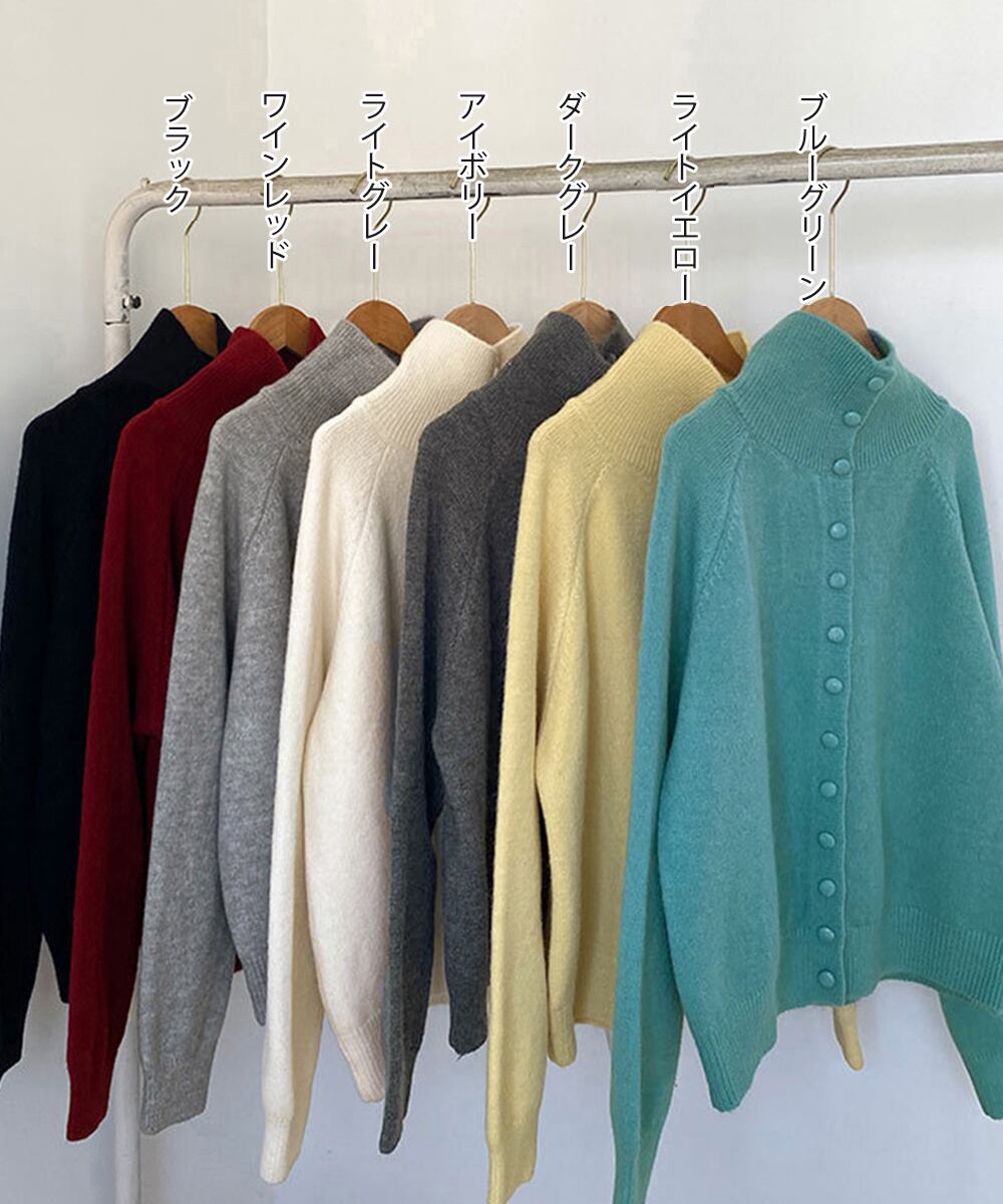 【日本倉庫即納】 くるみボタンハイネックニットカーディガン