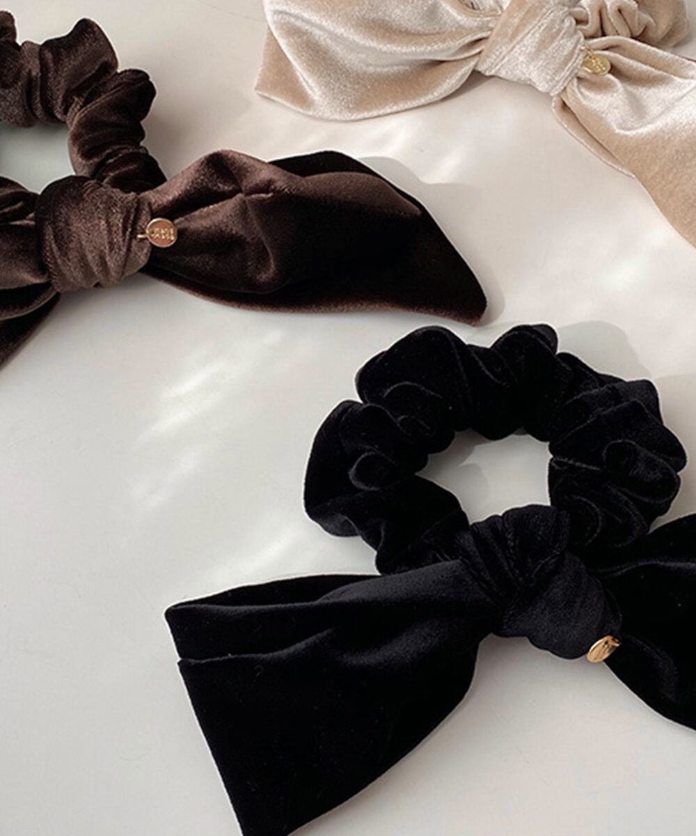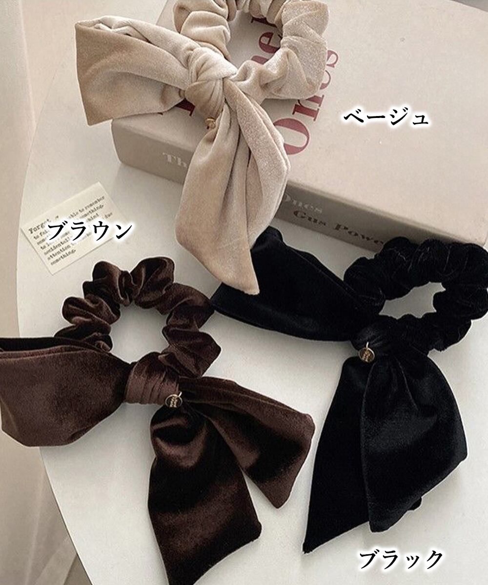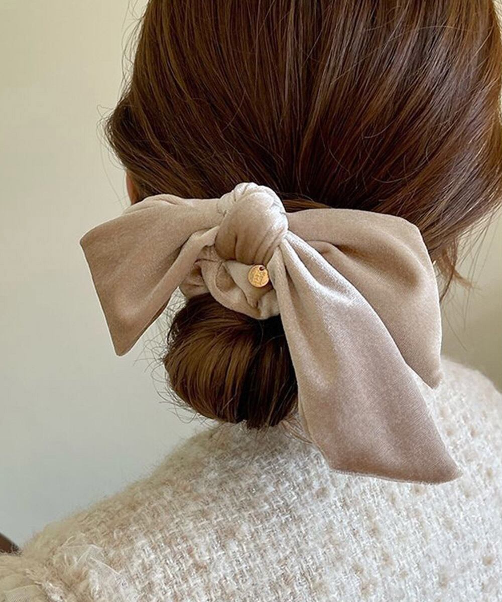 ベロア素材の大きめリボンヘアゴム。