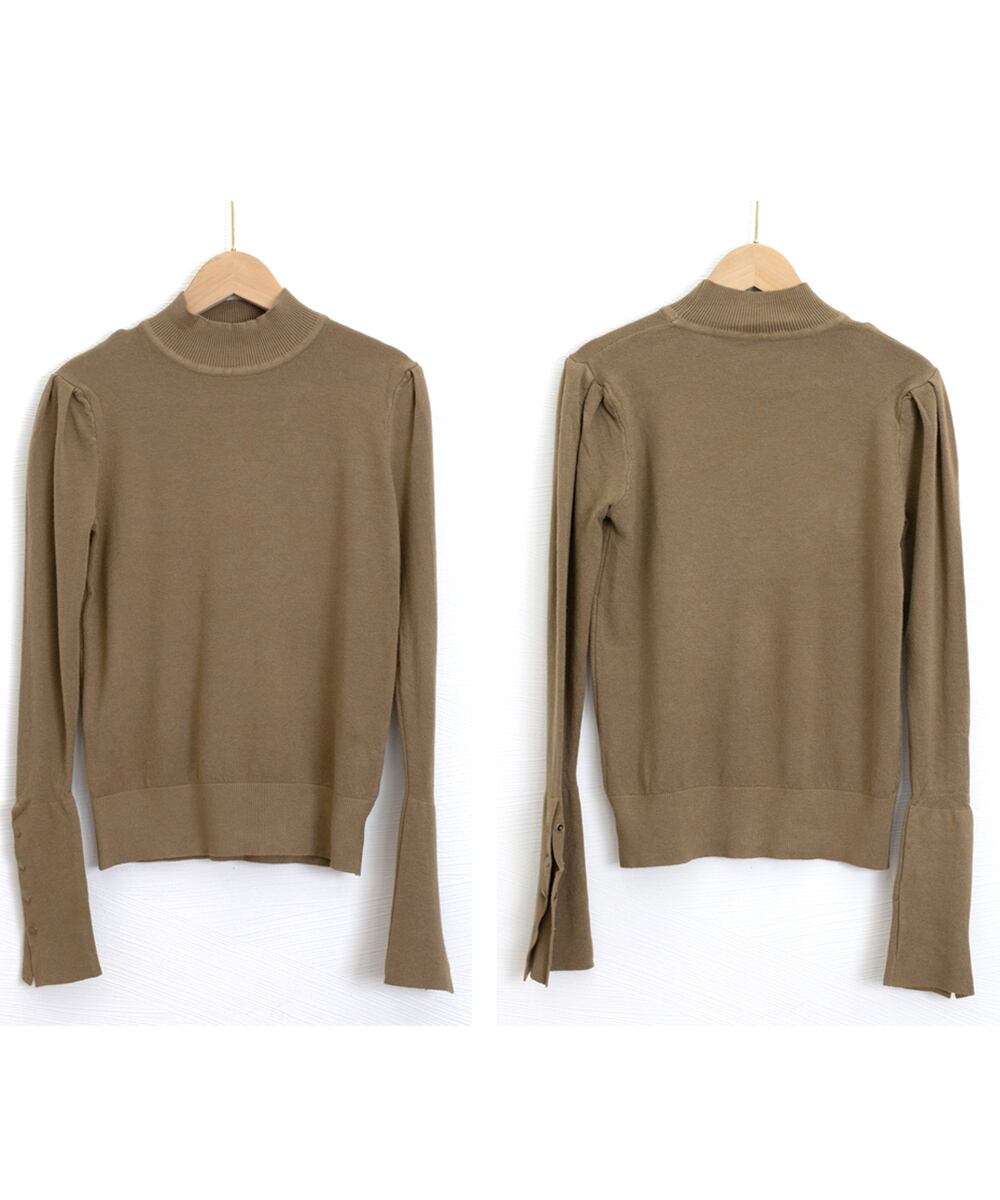 レディース リブニット キレイめ 袖ボタントップス 着回し 大人可愛い ニットウェア 韓国風 セーター 春秋冬 通勤通学