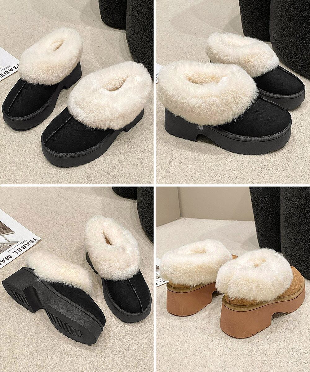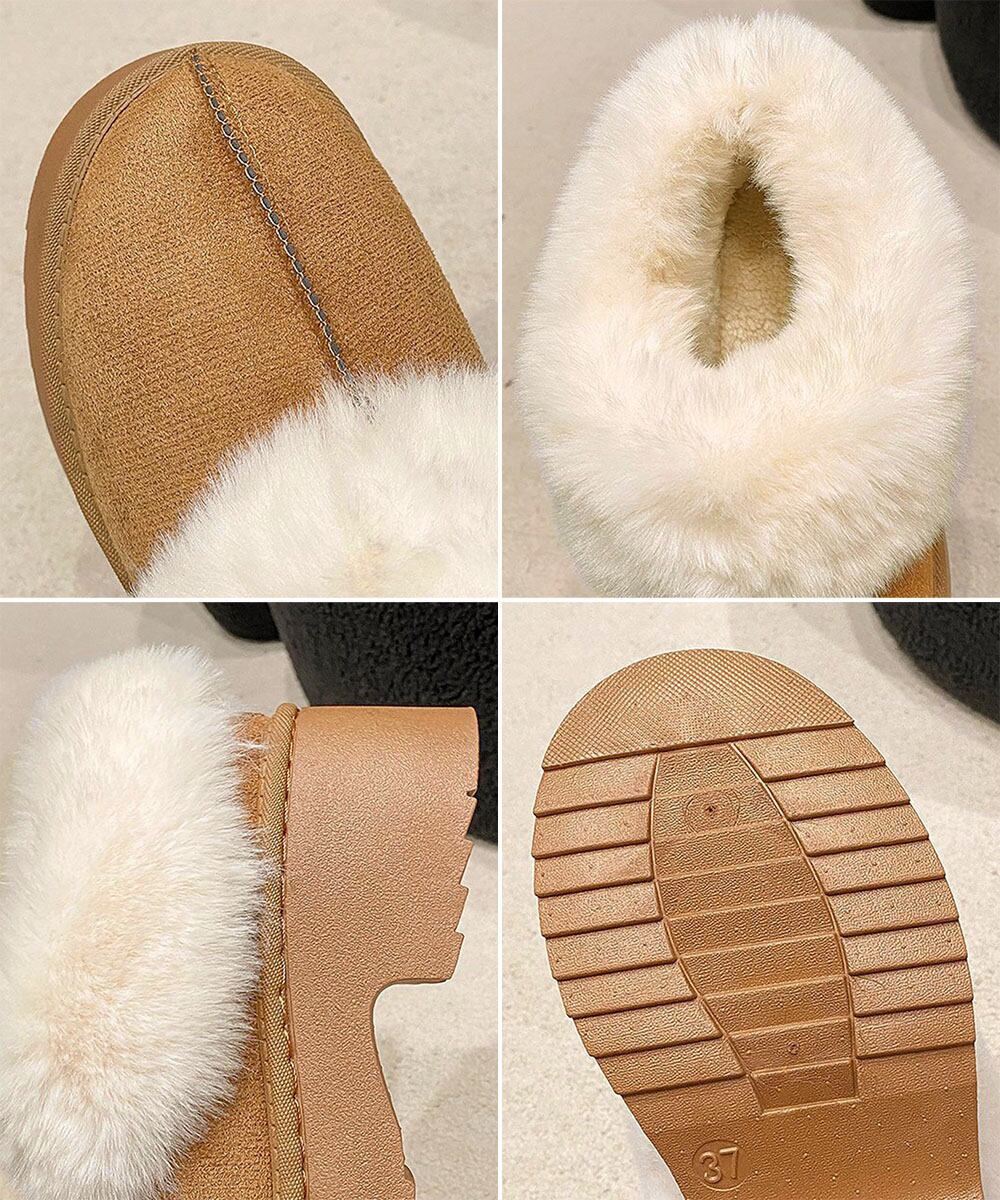 ボリュームファー ショートブーツ もこもこムートンシューズ 暖かい冬ブーツ カジュアル 美脚ボアシューズ あったか防寒靴