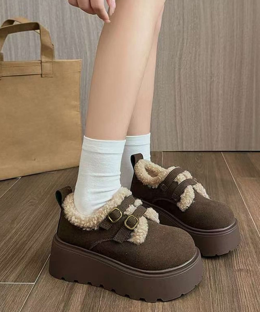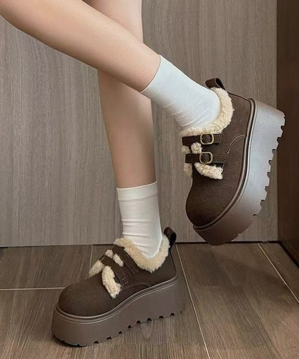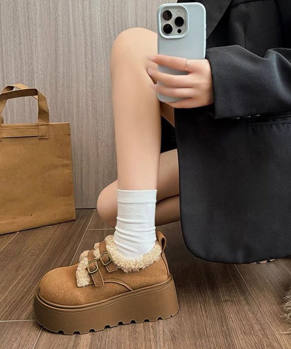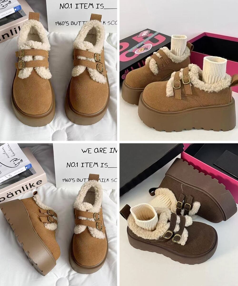 【日本倉庫即納】 ダブルベルトボアムートンシューズ 厚底靴