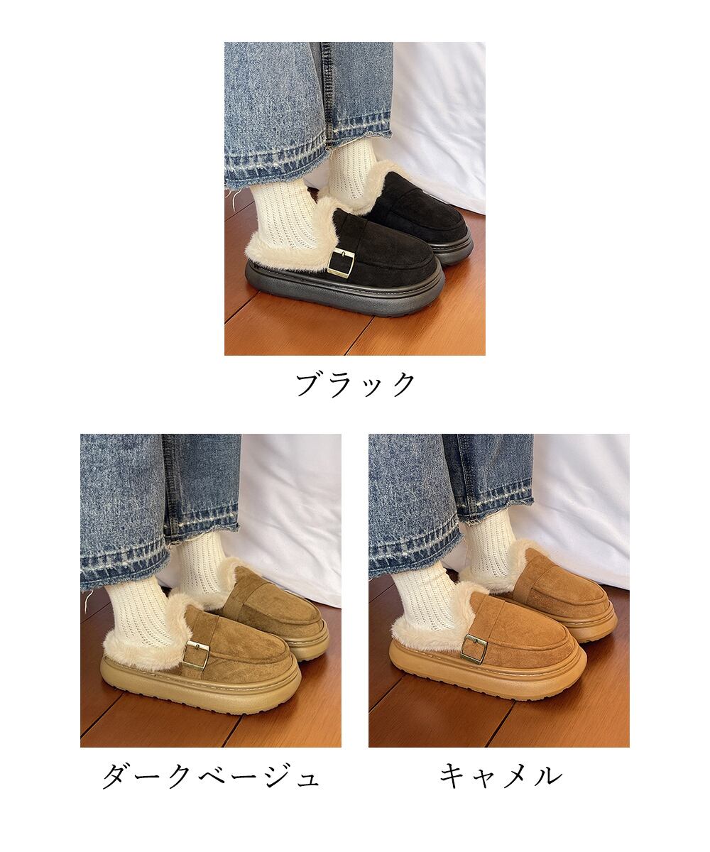 【日本倉庫即納】 ファーモカシン 厚底 裏起毛 レディース