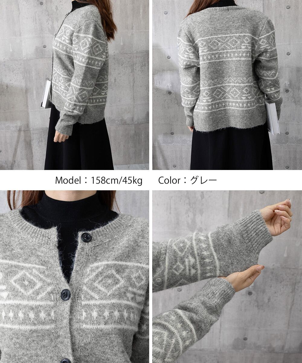 【日本倉庫即納】 ノルディック柄ニットカーディガン 北欧風