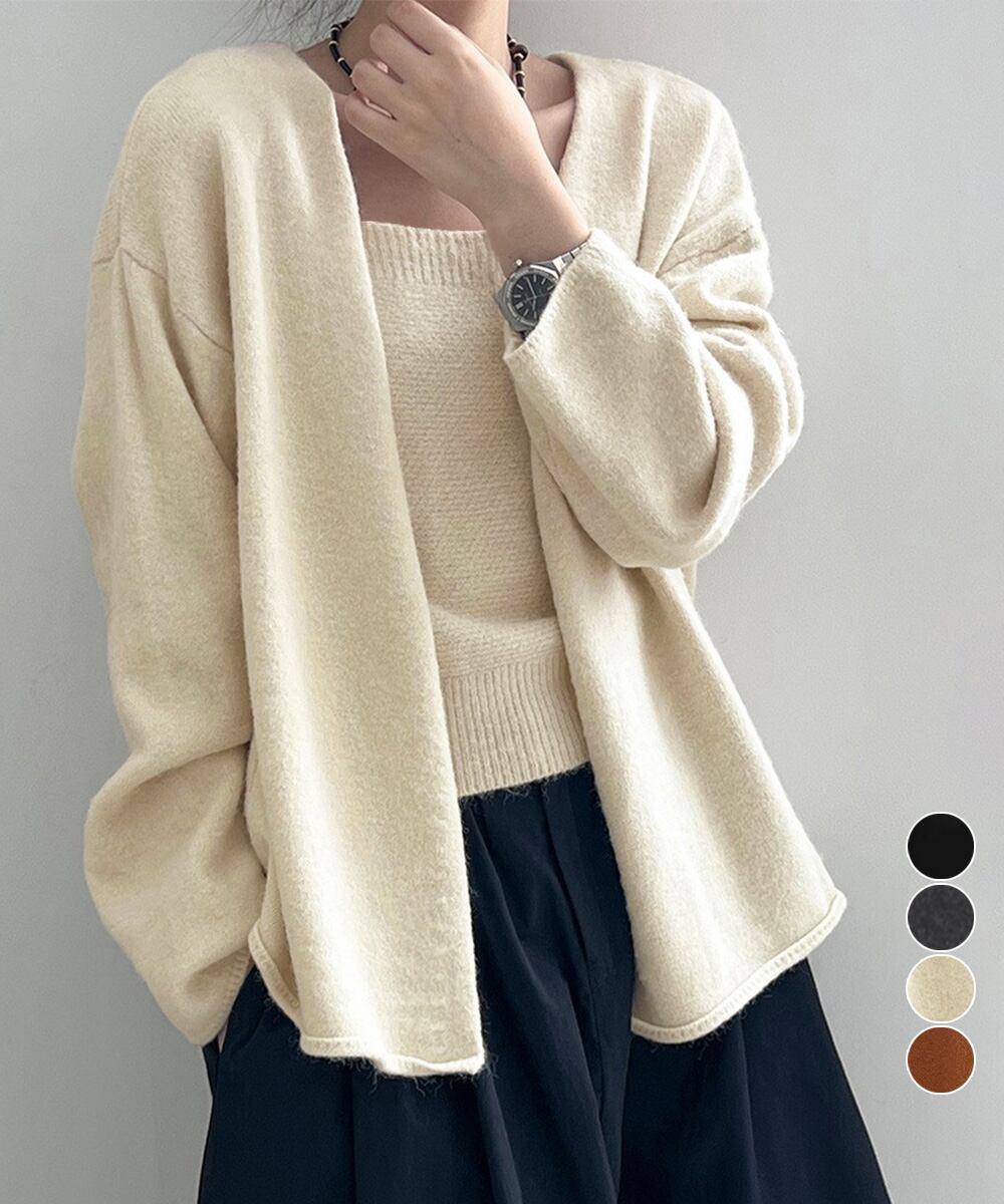 柔らかくソフトなタッチが心地よい、春秋冬のニットカーディガンとキャミソールの2点セット。