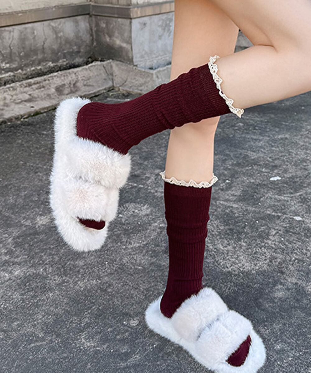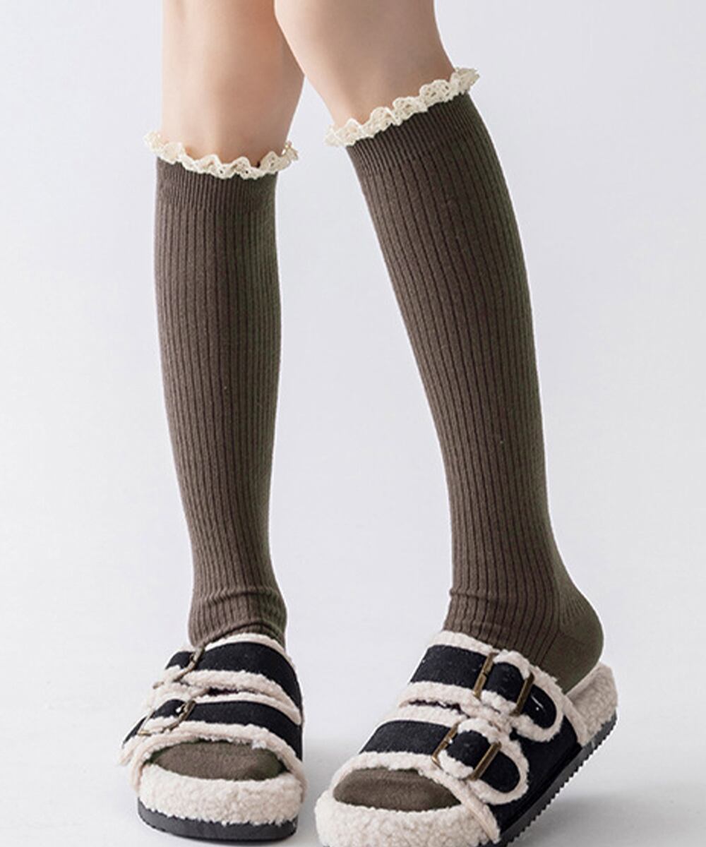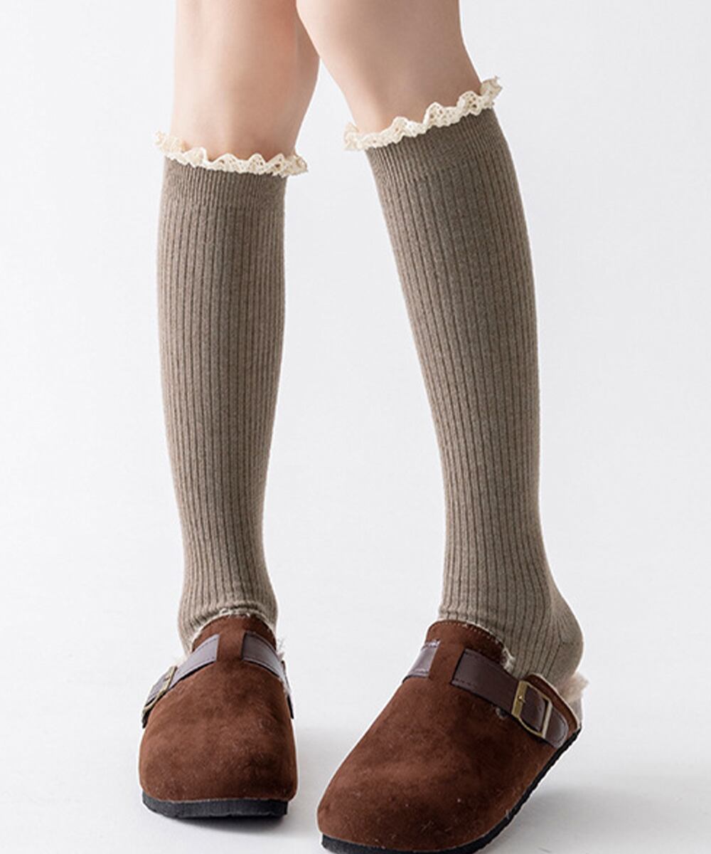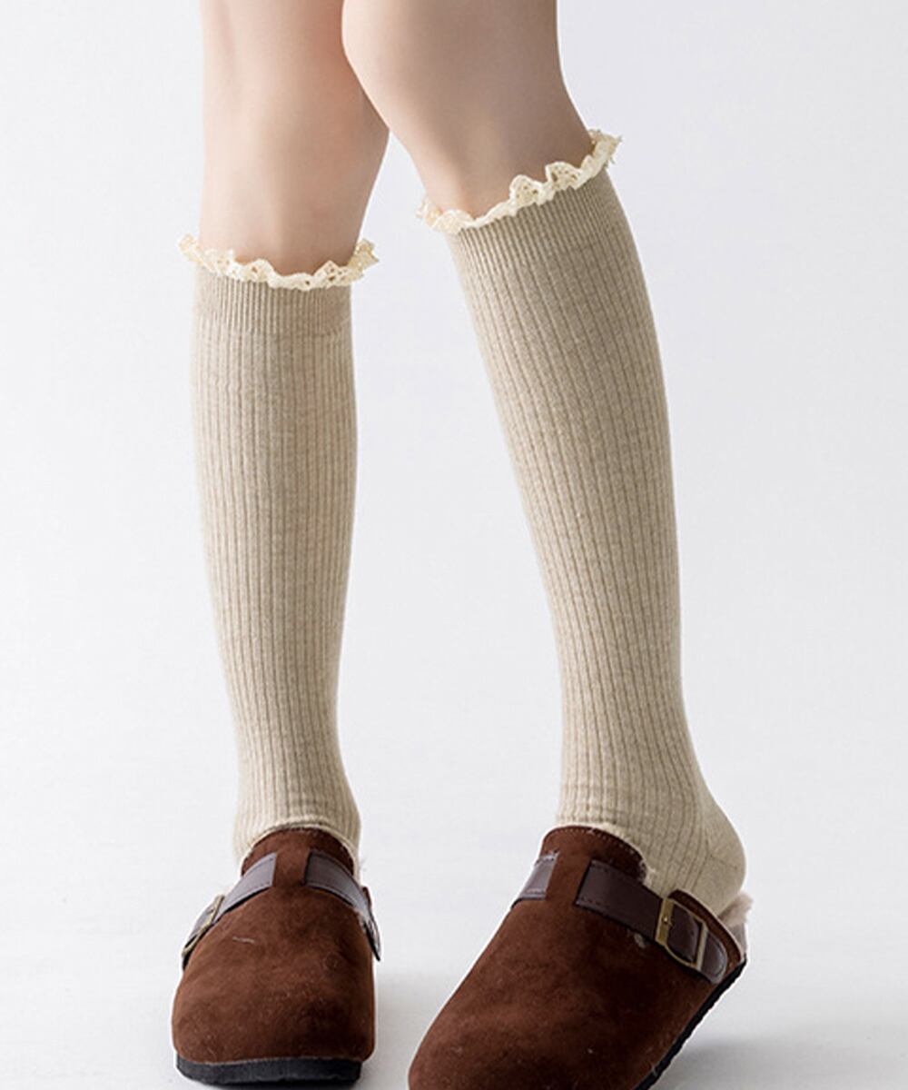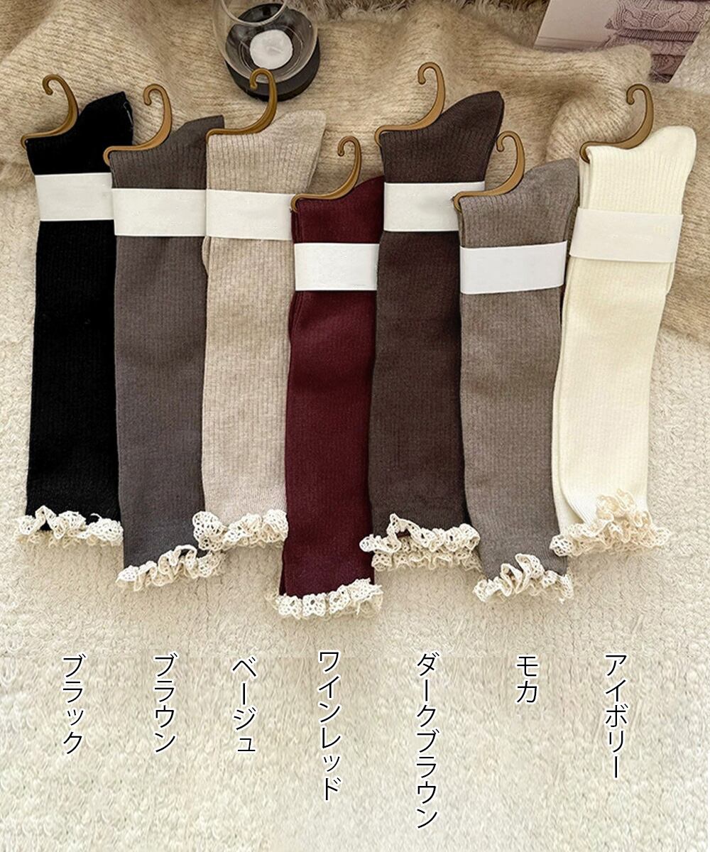 可愛いレースハイソックス レディース カジュアル防寒靴下あったか 春秋冬リブソックス 無地ルームソックス冷え対策美脚脚長