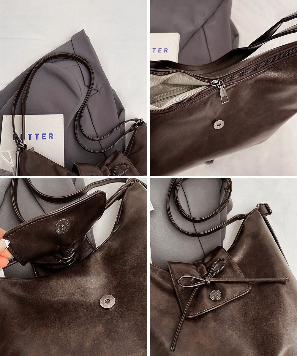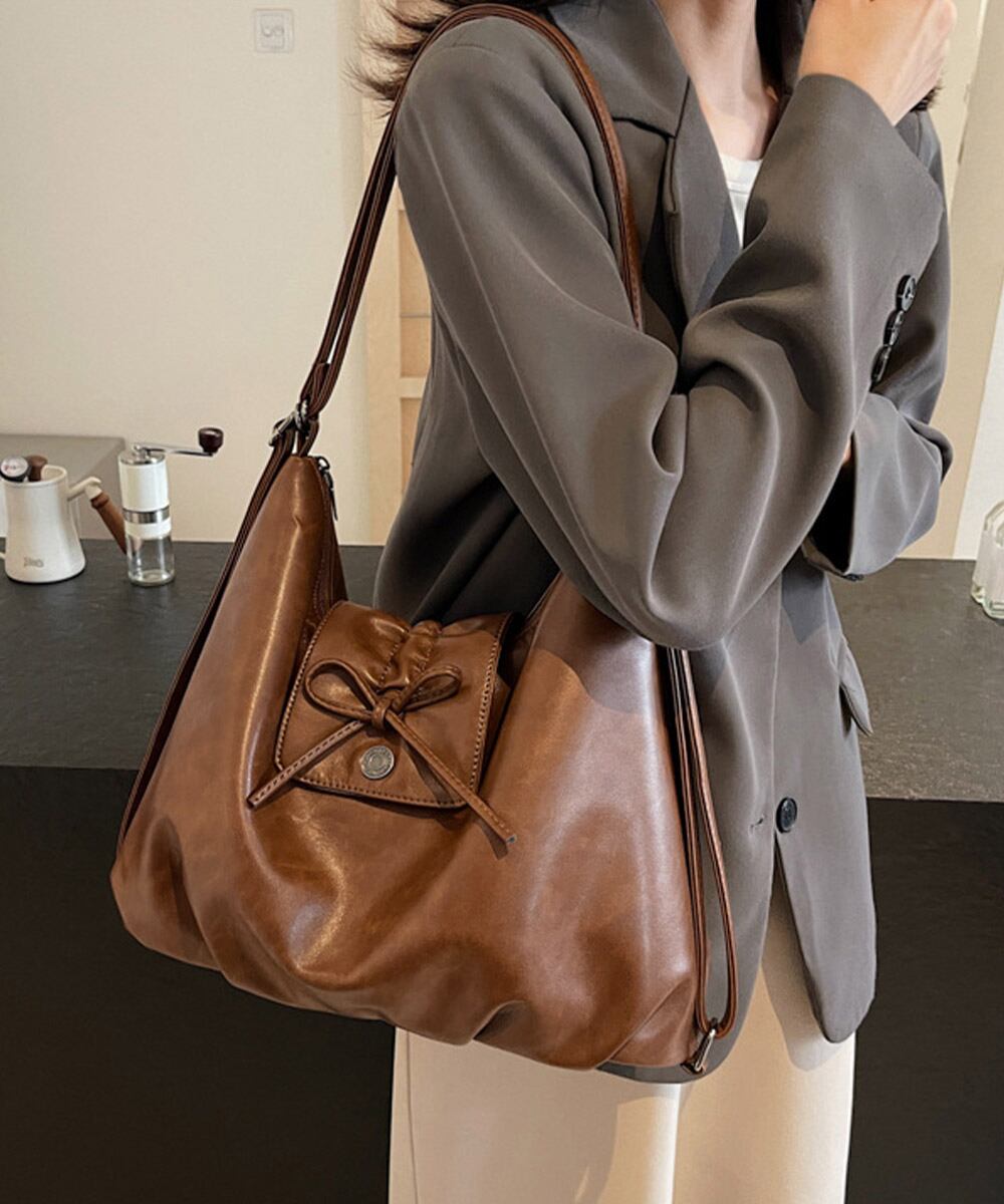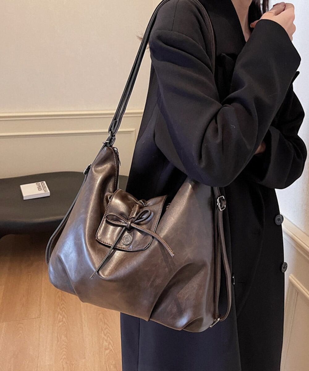 レディース レトロ風 A4トートバッグ カジュアル斜め掛けカバン 大容量 リボンモチーフ 通勤通学バッグ大人可愛い韓国風