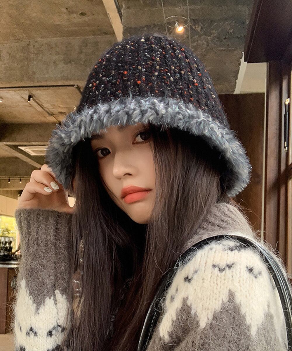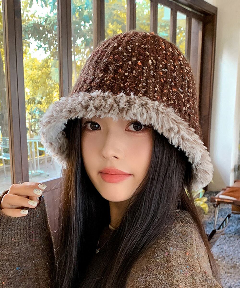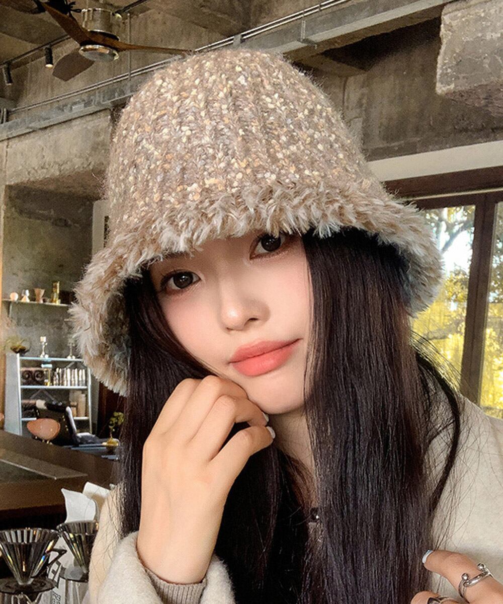 ふわふわとした肌触りの良いニット素材で仕上げたバケットハット。