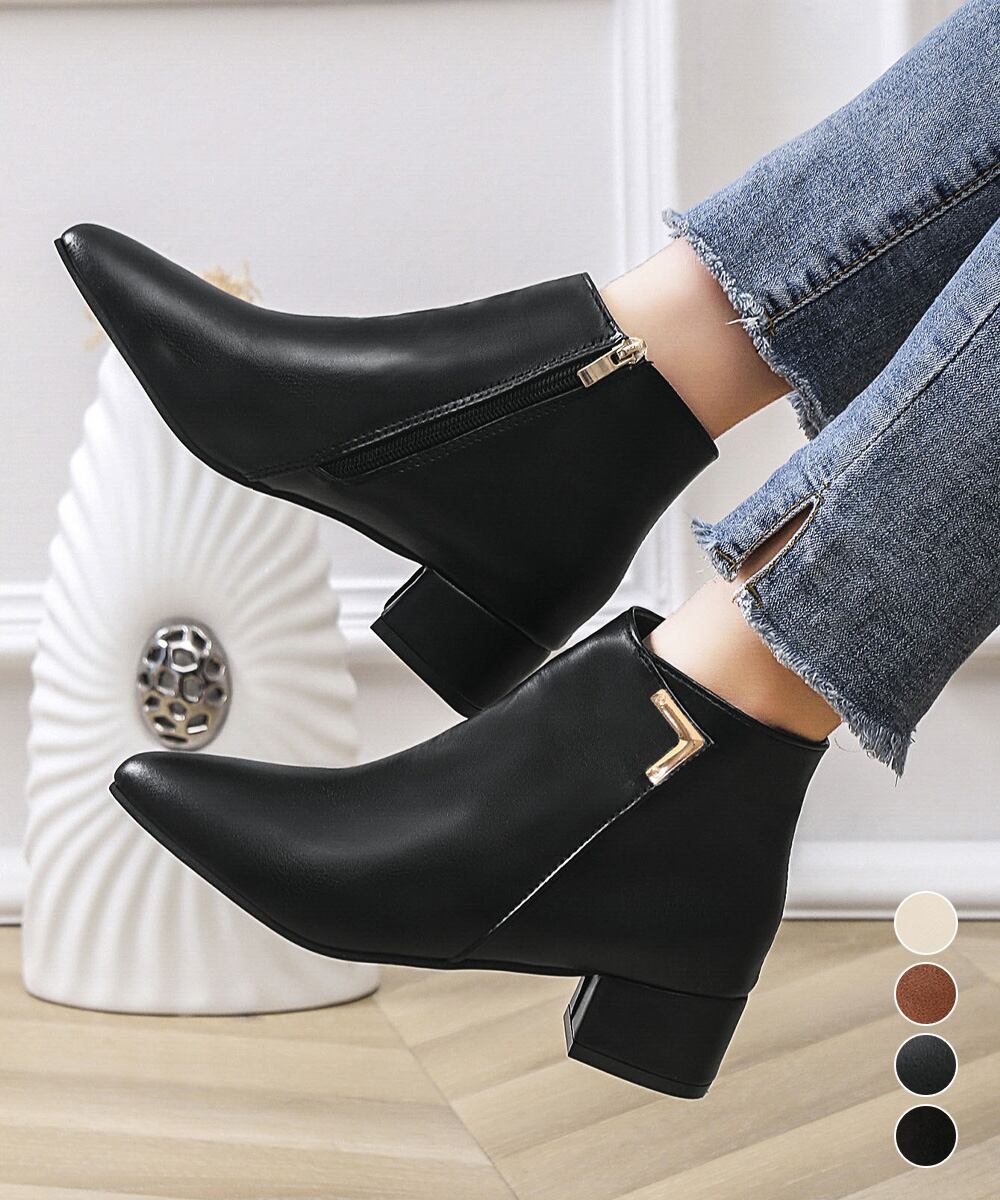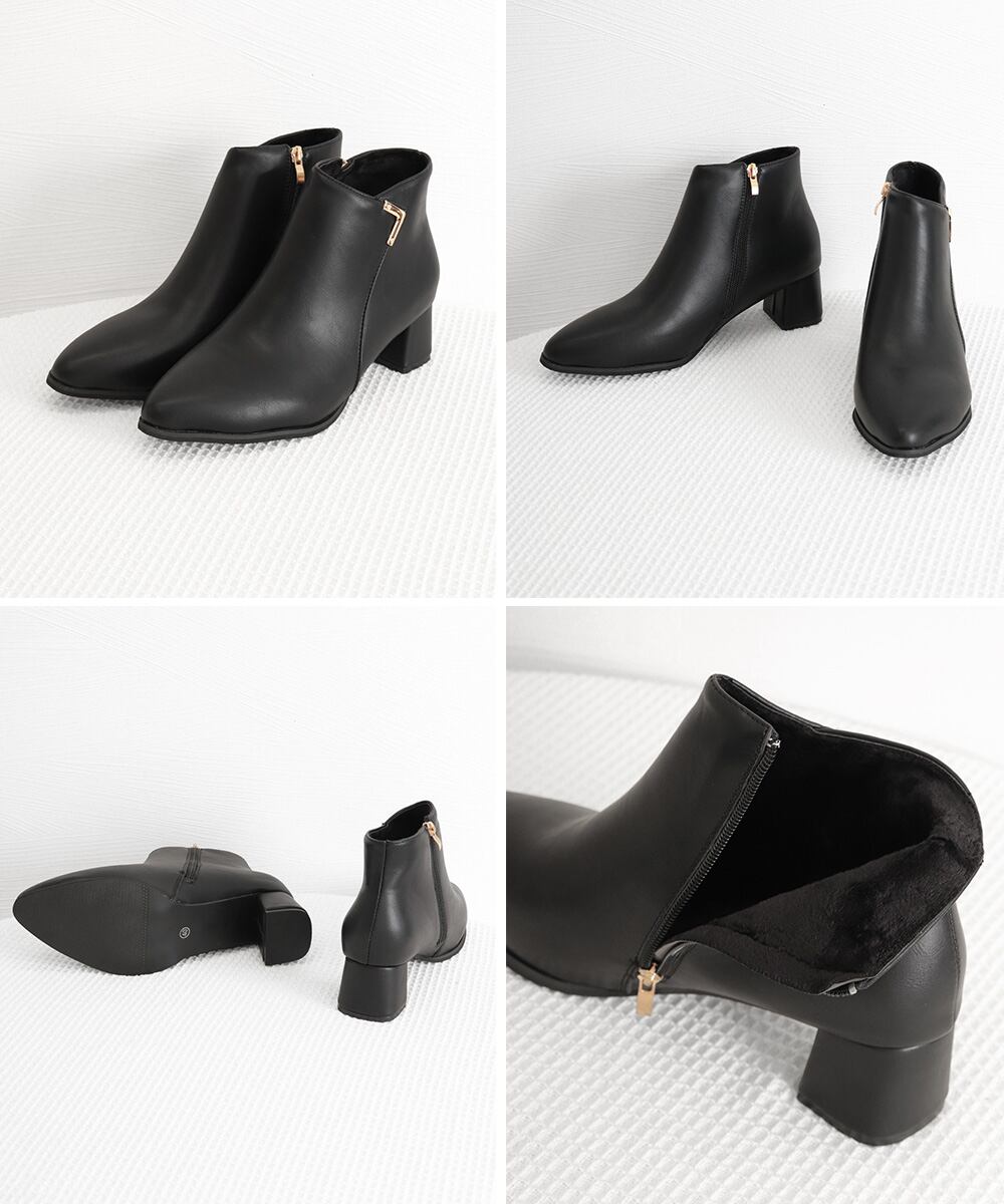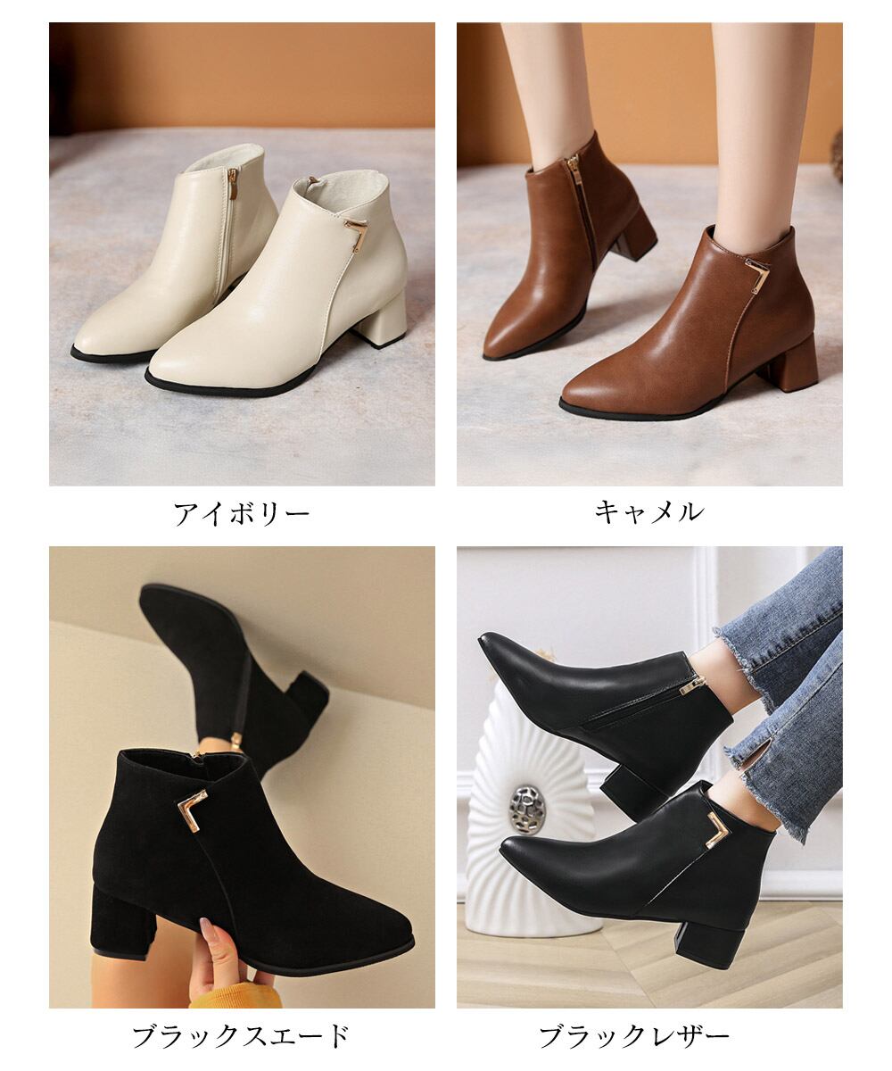 レディースシューズ 裏起毛 太ヒールブーツ おしゃれ サイドファスナー ローヒール 歩きやすい 美脚脚長 通勤通学くつ