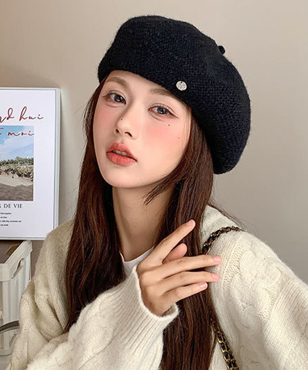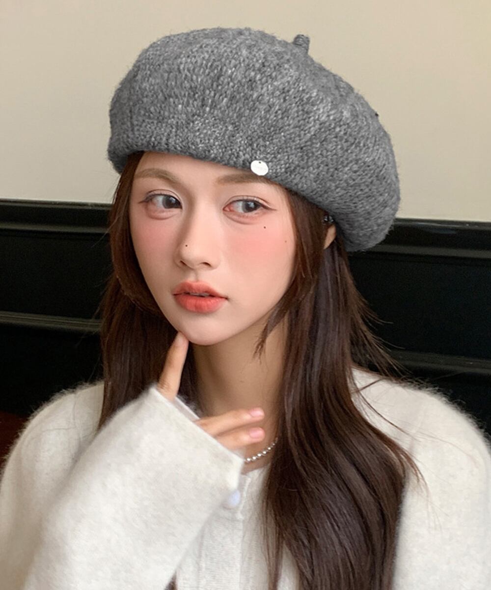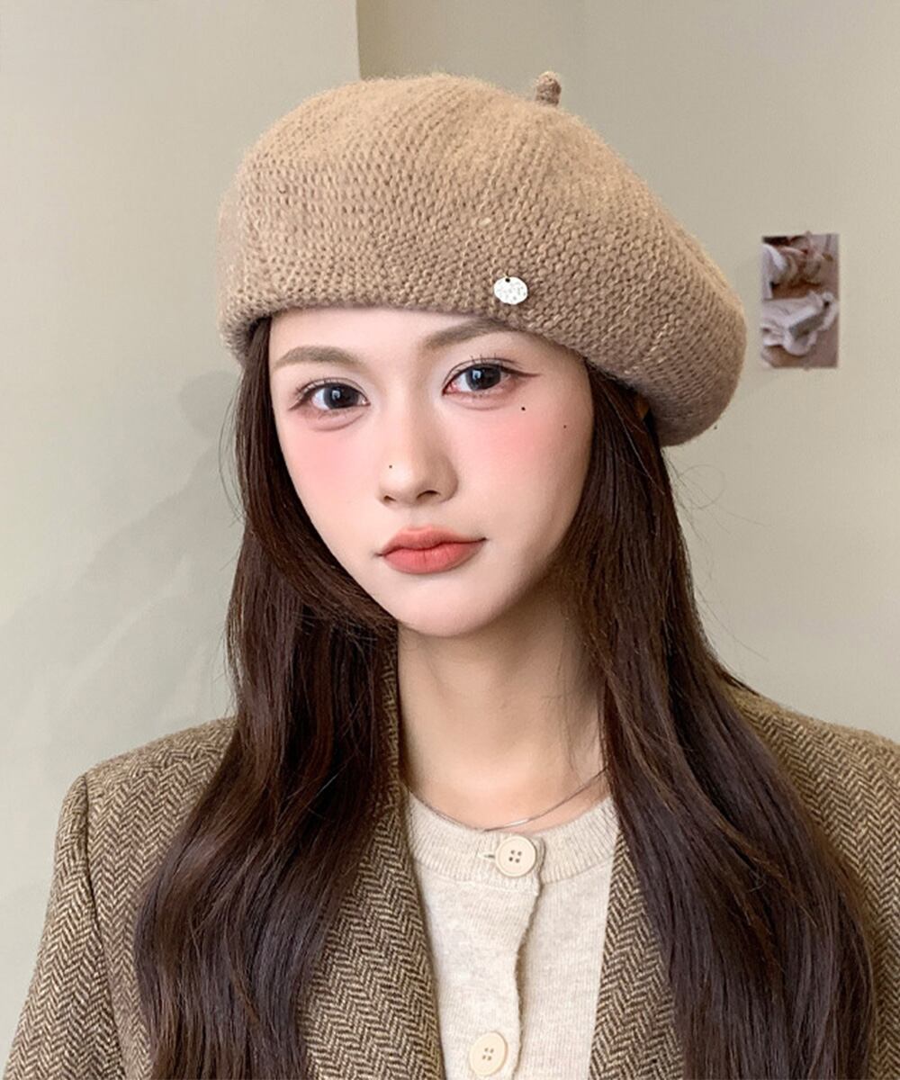 かわいいニット素材のベレー帽。