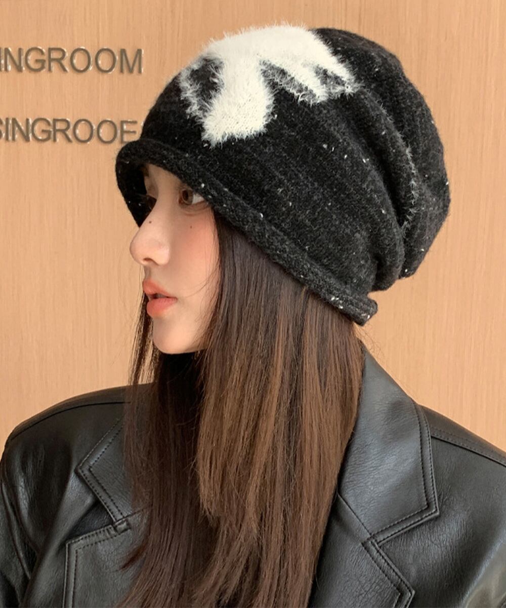 ふわふわ素材のリボン柄がポイントになった、ニットビーニー帽です。