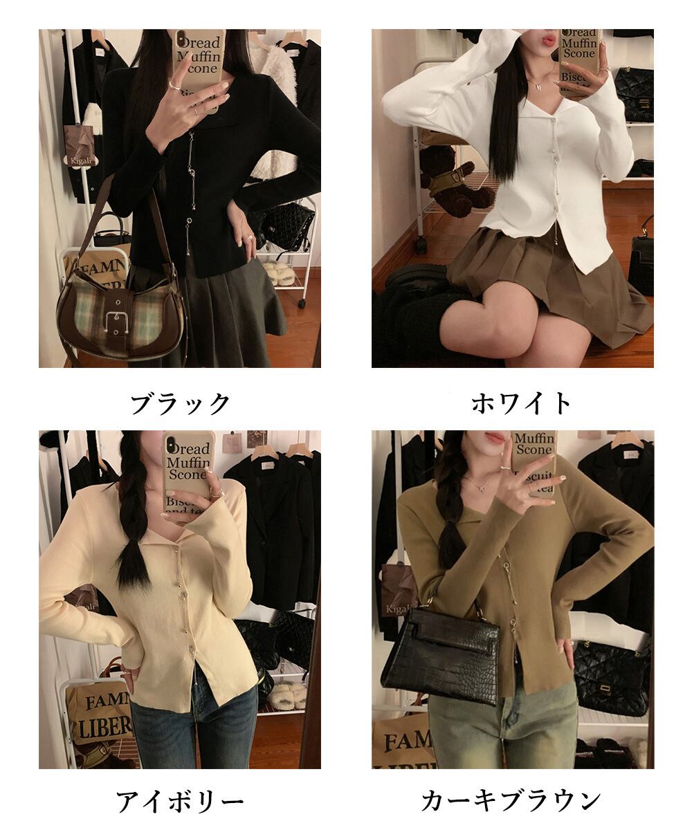 レディース長袖 暖かい 韓国風ニットソー 着やせタイトニット オフィスカジュアル 可愛い ニットセーター 襟付き 秋冬
