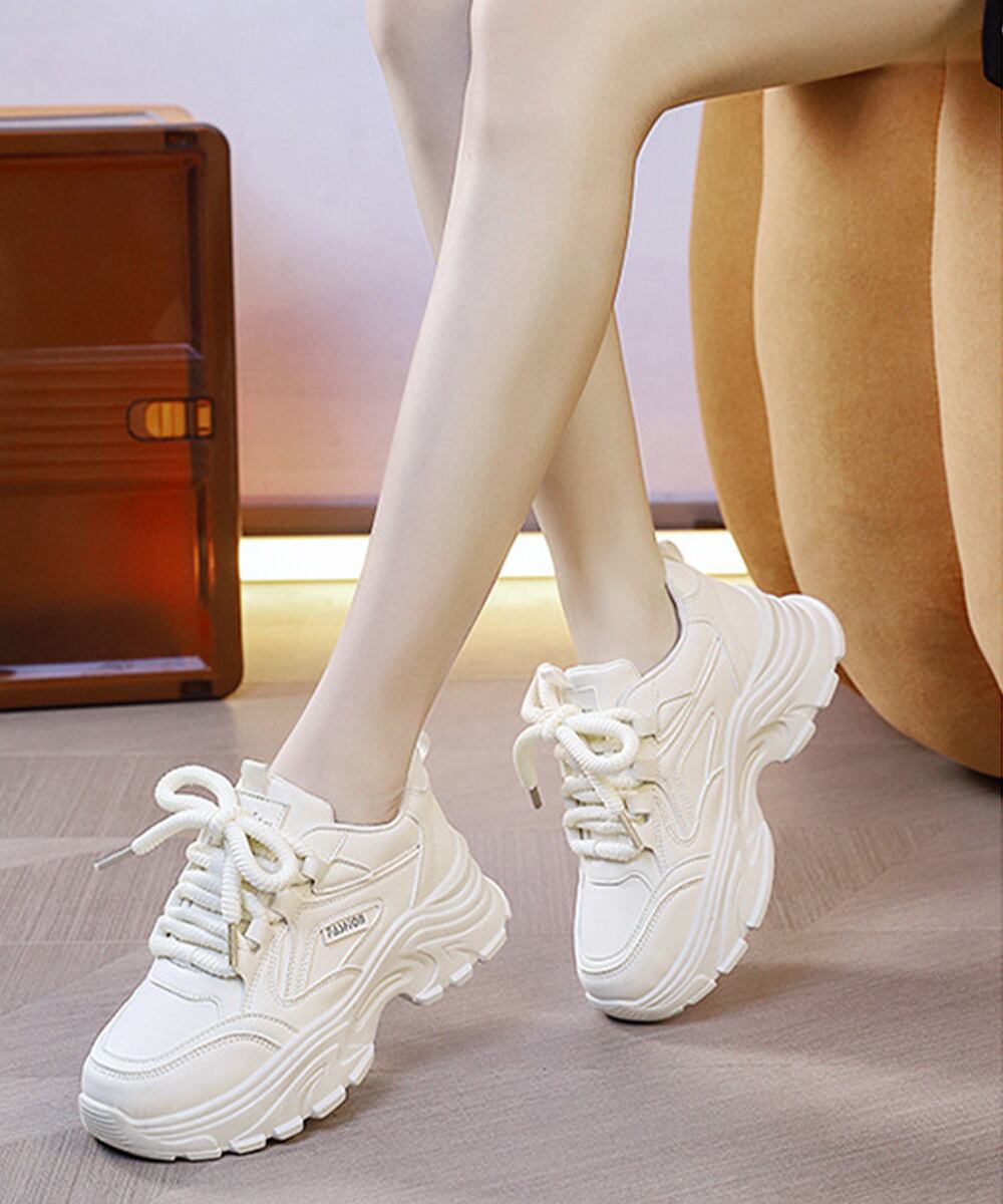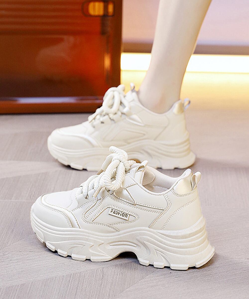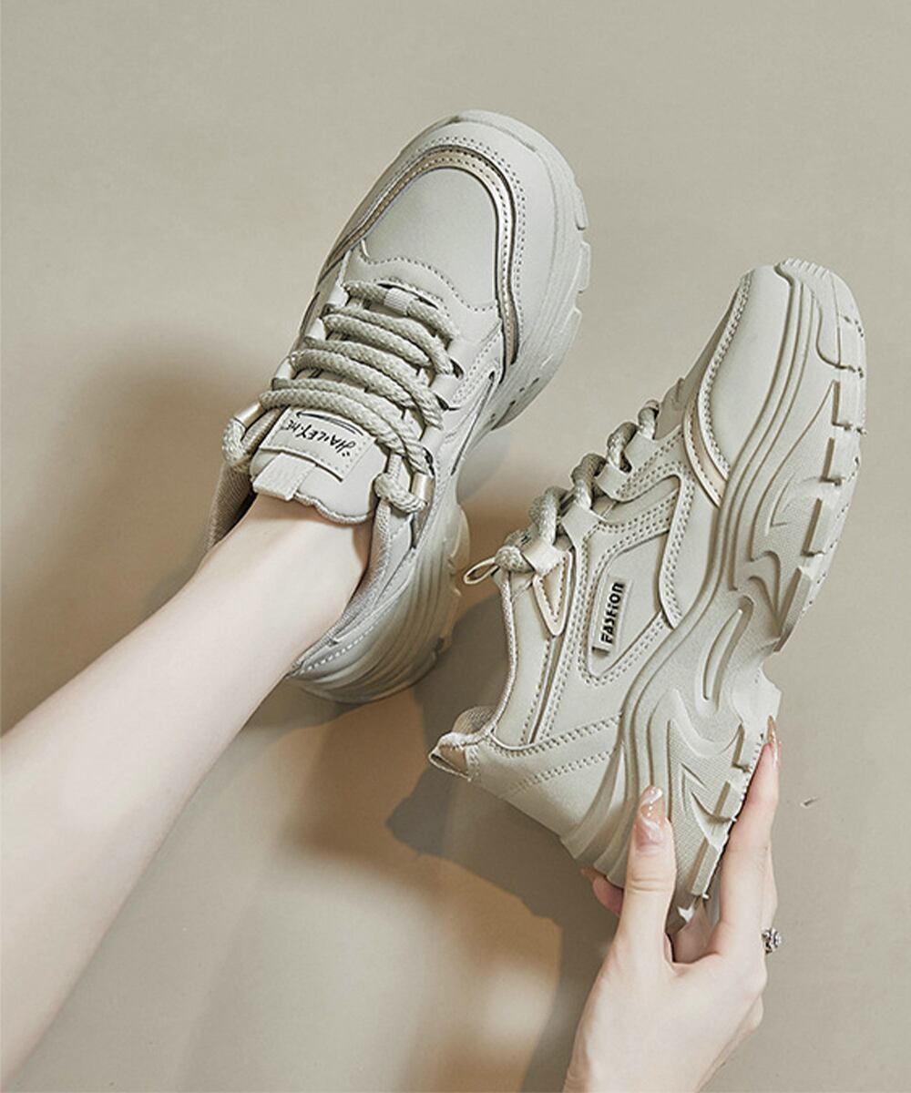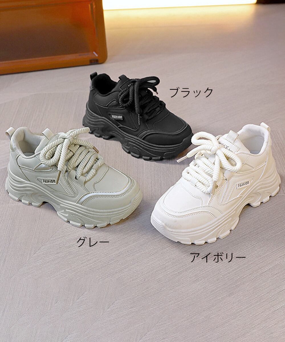 カジュアルチャンキースニーカー 履きやすいローカットスニーカー 疲れにくいシューズ ボリュームソール合皮スニーカー四季