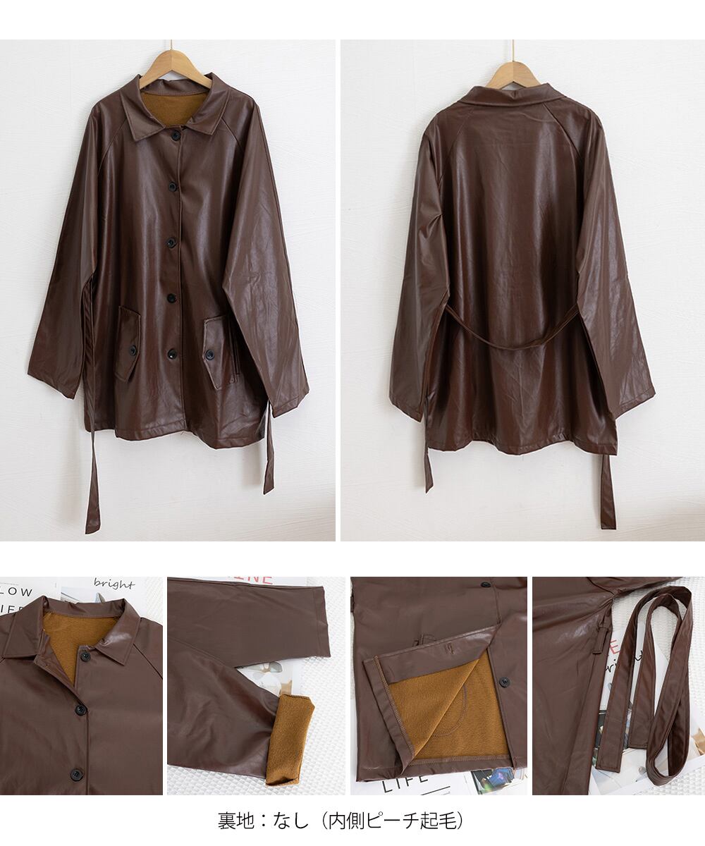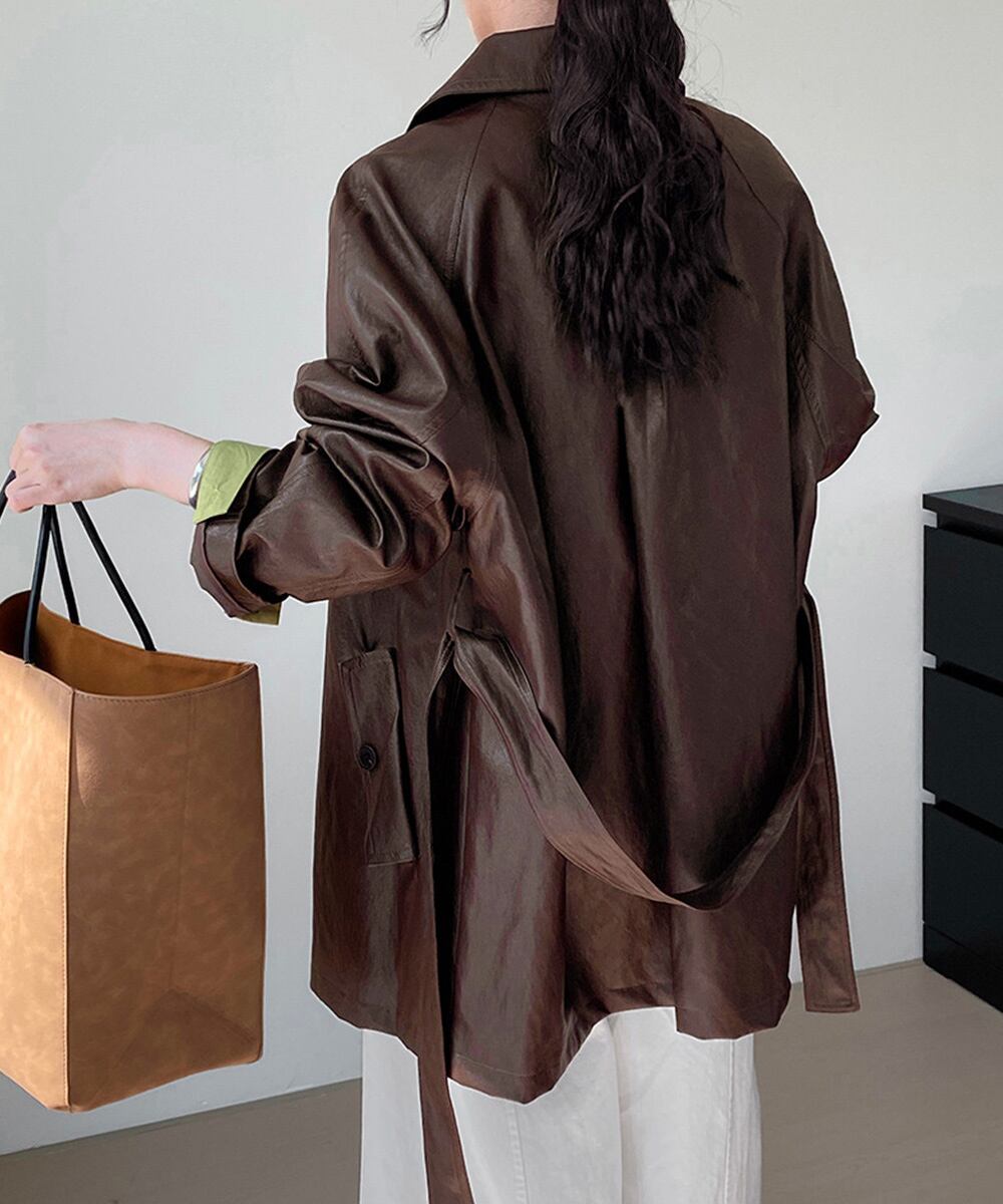 上質なフェイクレザーを使用したロングトレンチジャケット。