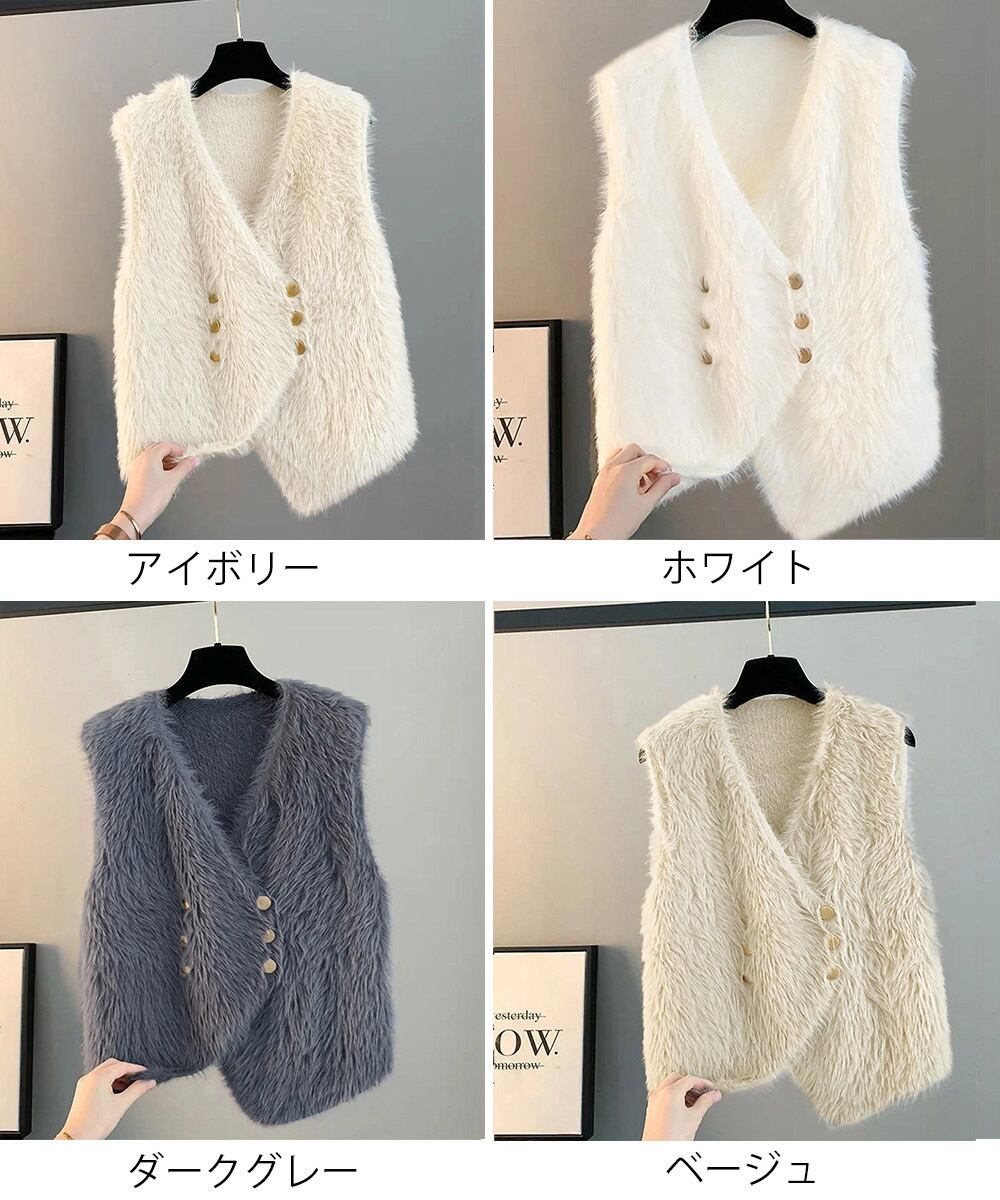 【日本倉庫即納】 ふわふわファーベストVネックニットベスト