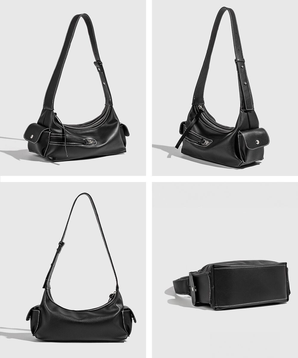 サイドポケット付き コンパクトお洒落鞄 無地バッグ 小さい