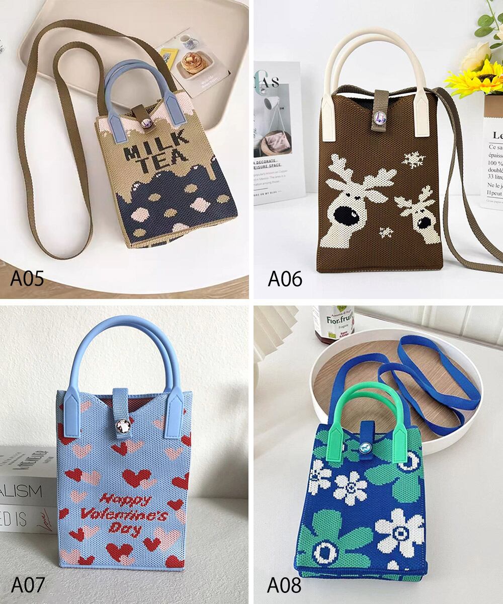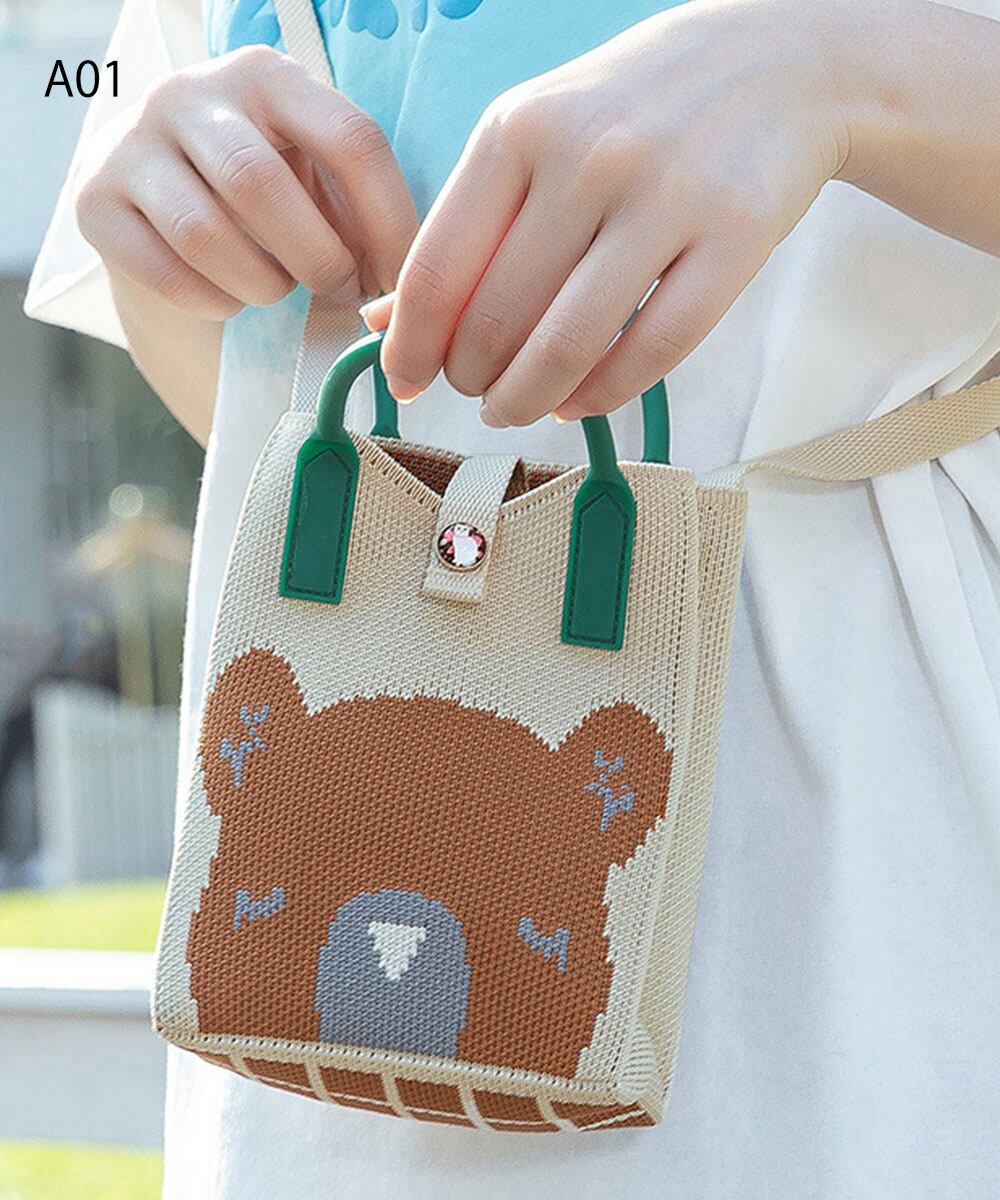 アートデザインミニニットトート 全機種対応携帯ポシェット アニマル柄斜め掛けバッグ コンパクト手提げバッグ カラフル軽量