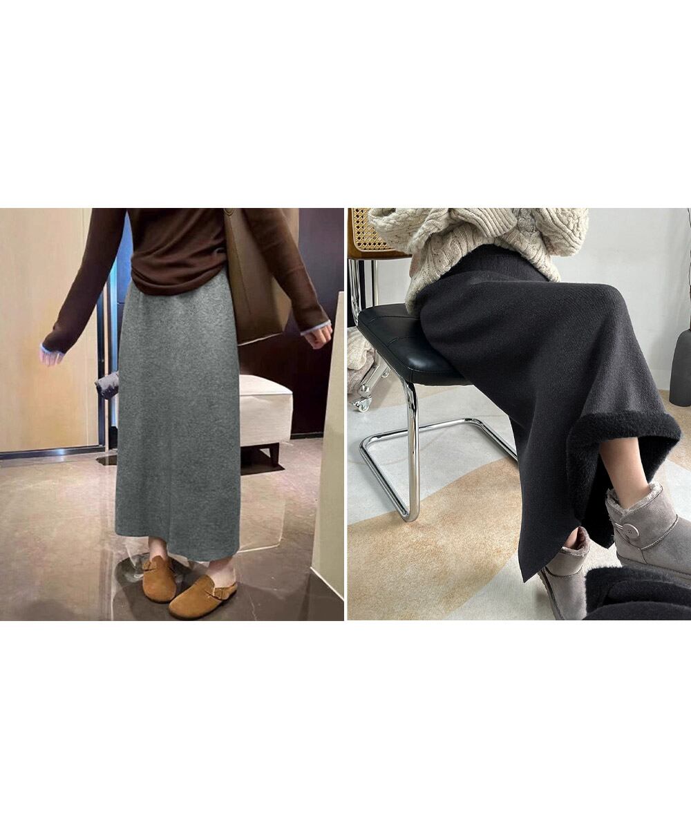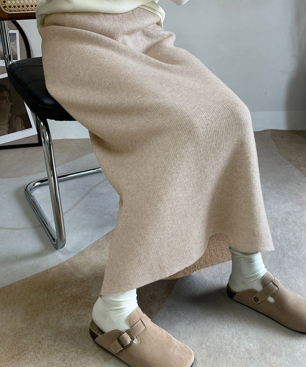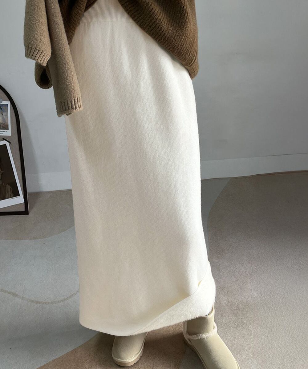裏起毛仕様で暖かく、冬にぴったりな厚手ニットタイトスカート。