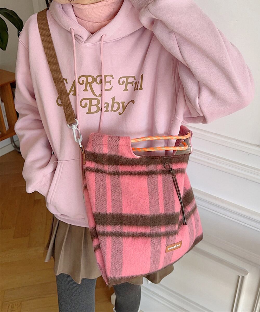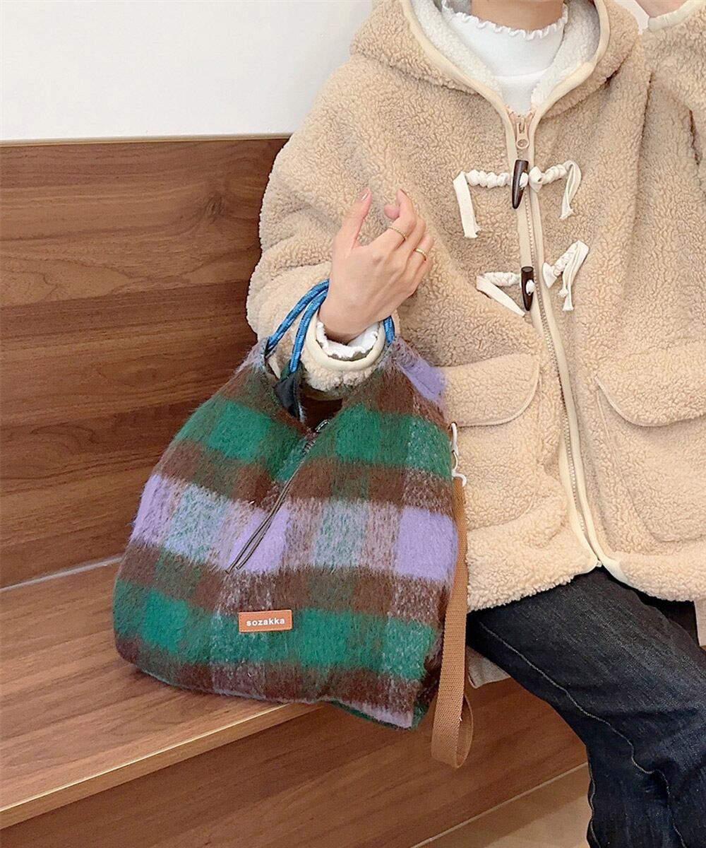 チェック柄デザインがコーデに映える、ウール調素材を使用した秋冬新作のショルダーバッグ。