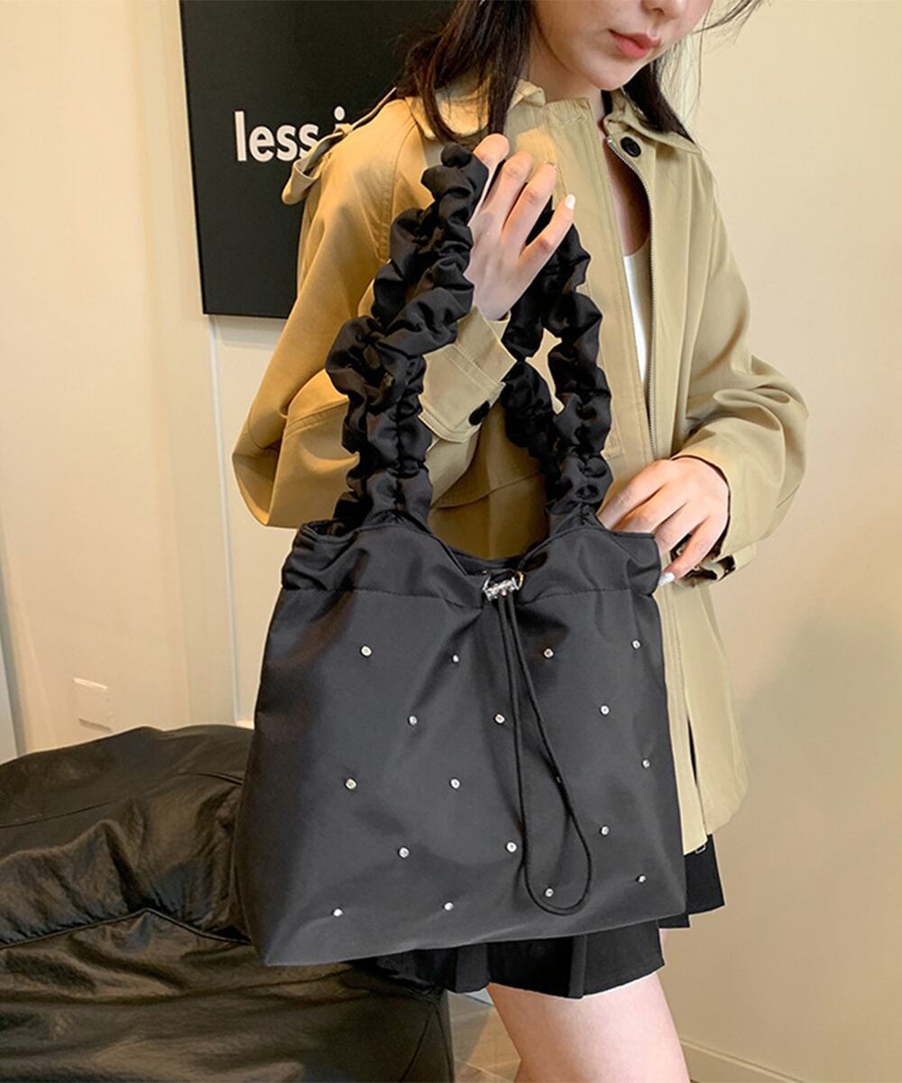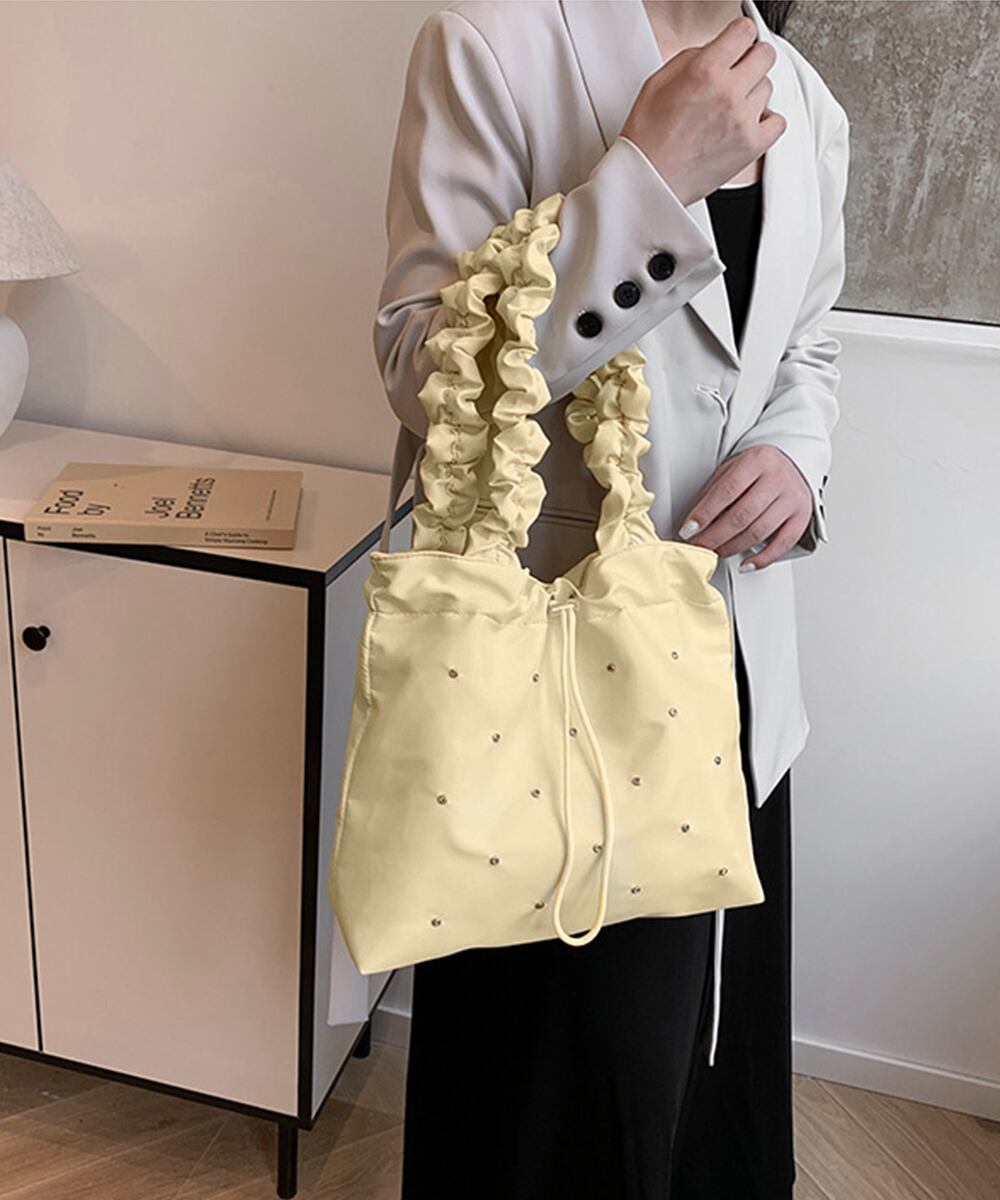 くしゅっとしたショルダーがポイントのトートバッグ。
