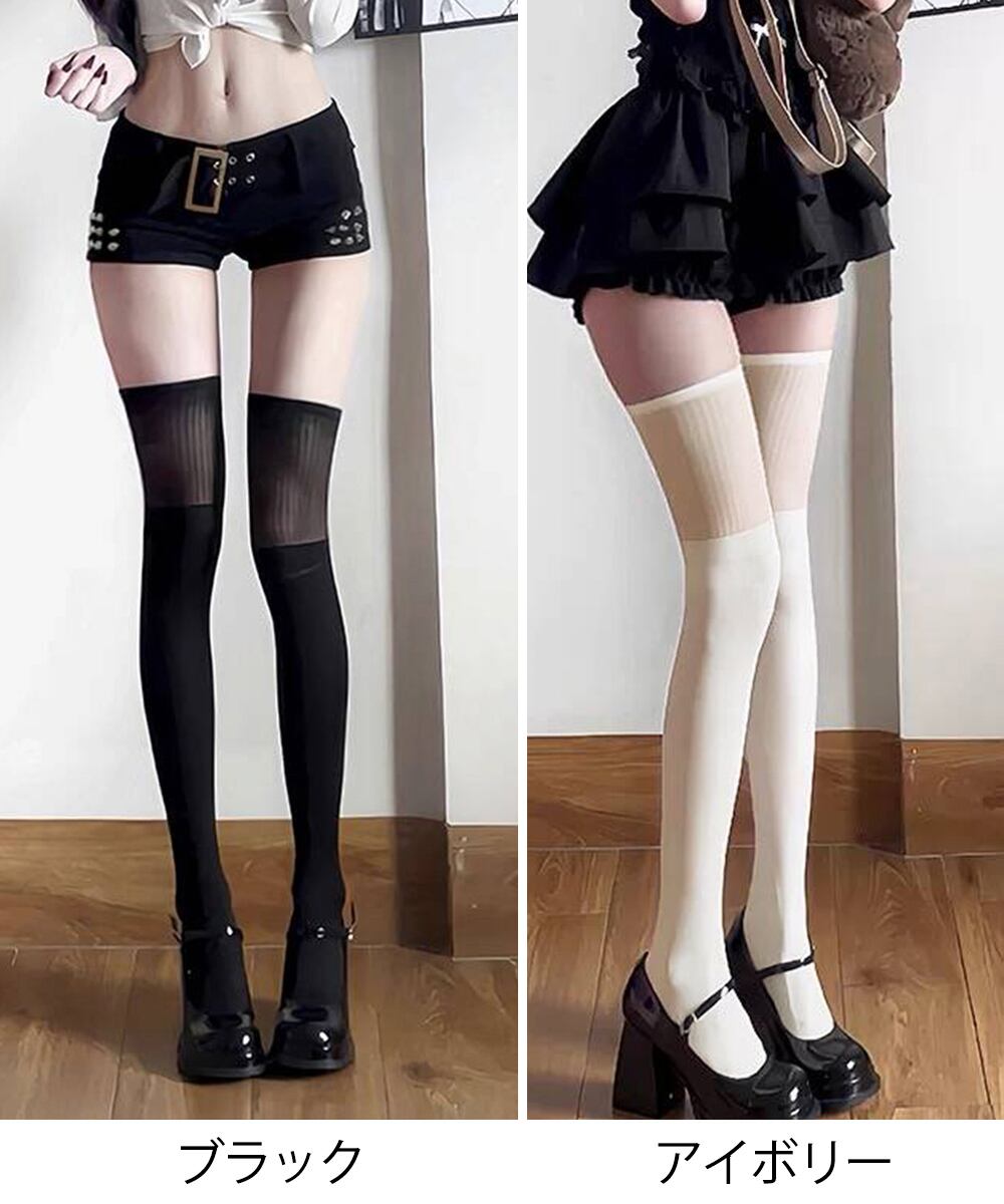 【日本倉庫即納】 異素材切替 ロングソックス レディース