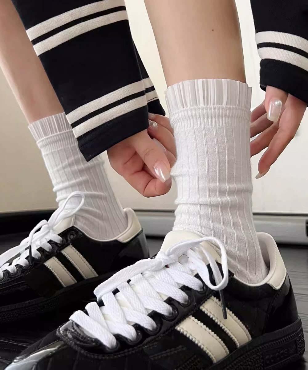 レディース フェミニン リブソックス 通勤通学ガーリー靴下 韓国ファッション 春夏秋冬 蒸れない綿靴下 プリーツソックス