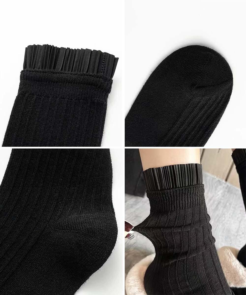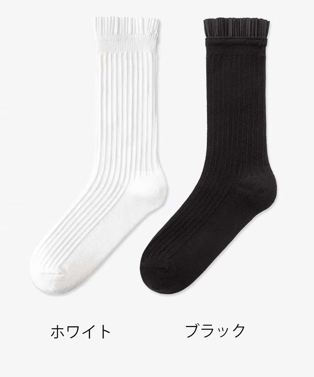 【日本倉庫即納】 プリーツフリルソックス ミドル丈無地靴下