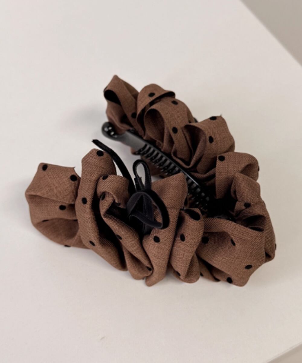 【日本倉庫即納】 ドット柄 フリルリボン バナナクリップ