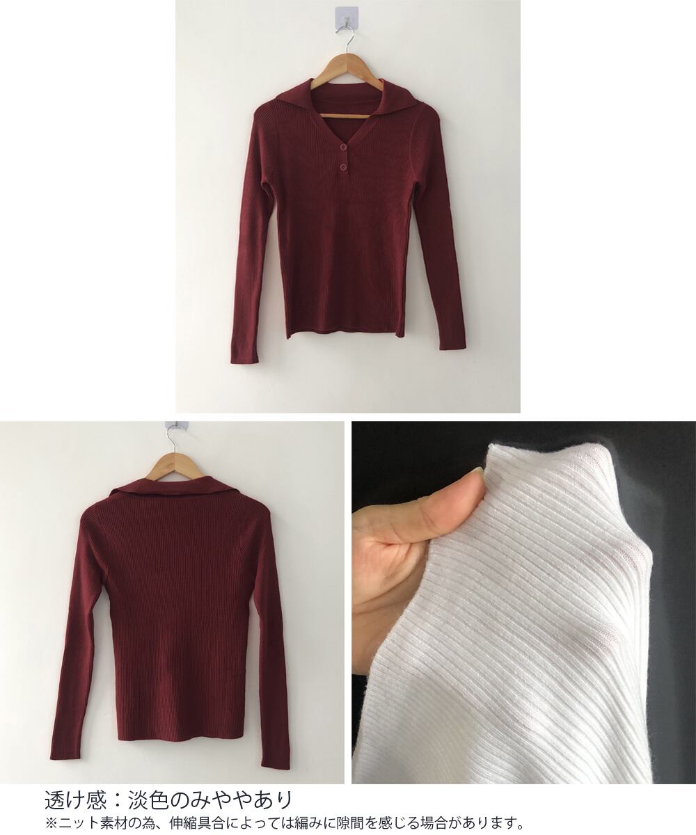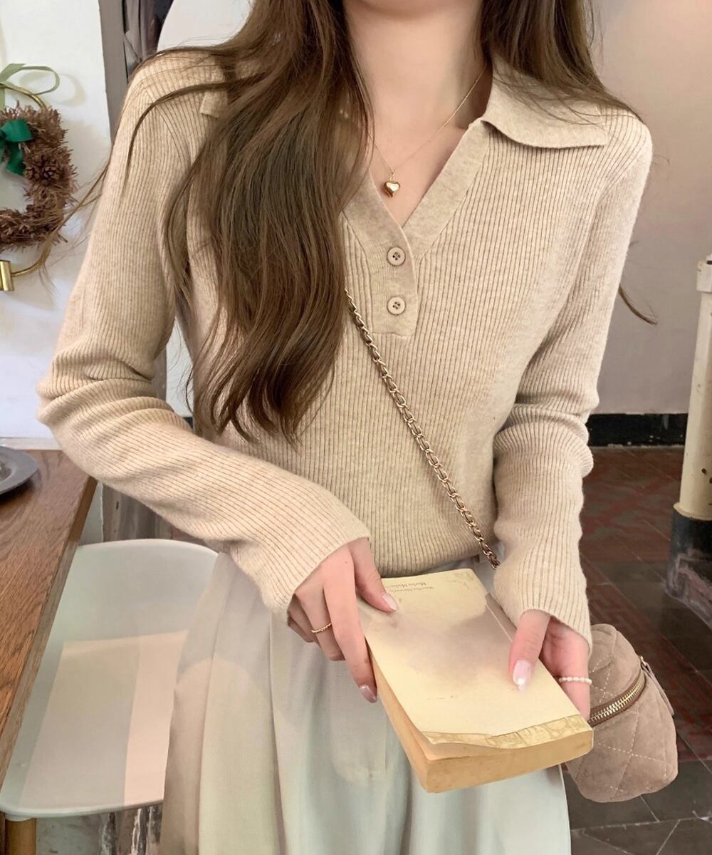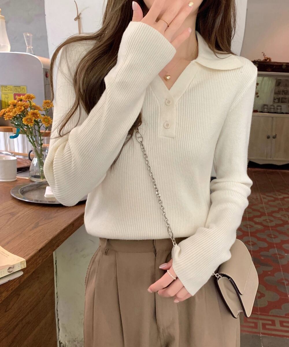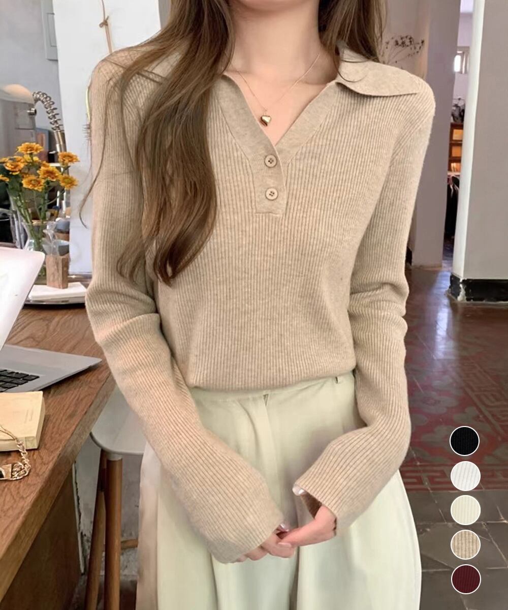【日本倉庫即納】 ポロニットトップス リブニット 韓国風