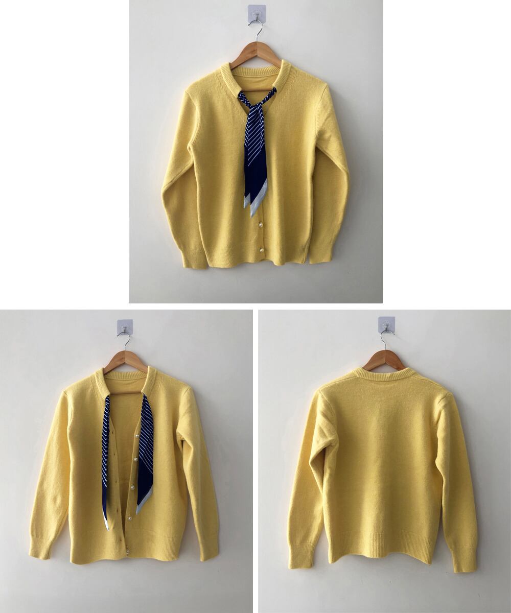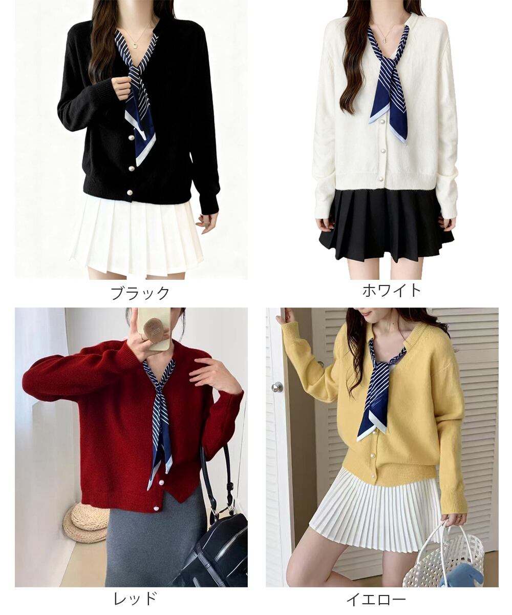 上品なパールボタンが女性らしさを引き立て、付属のスカーフでトレンド感もプラス。