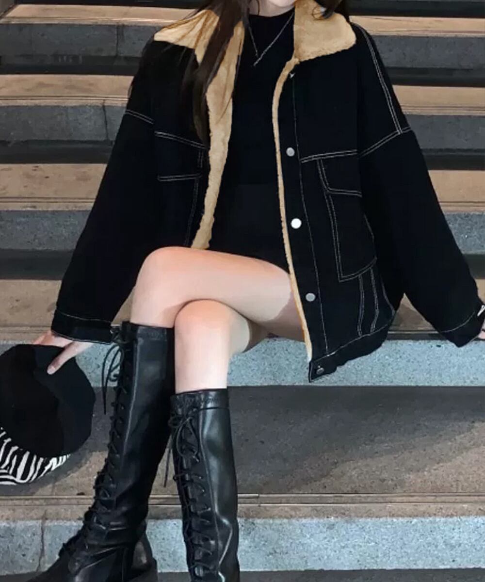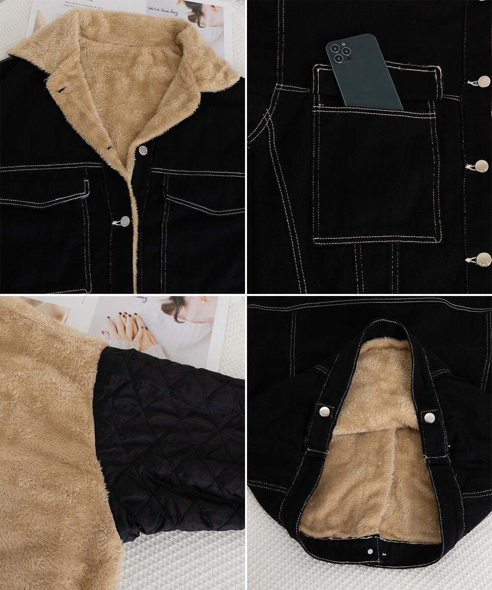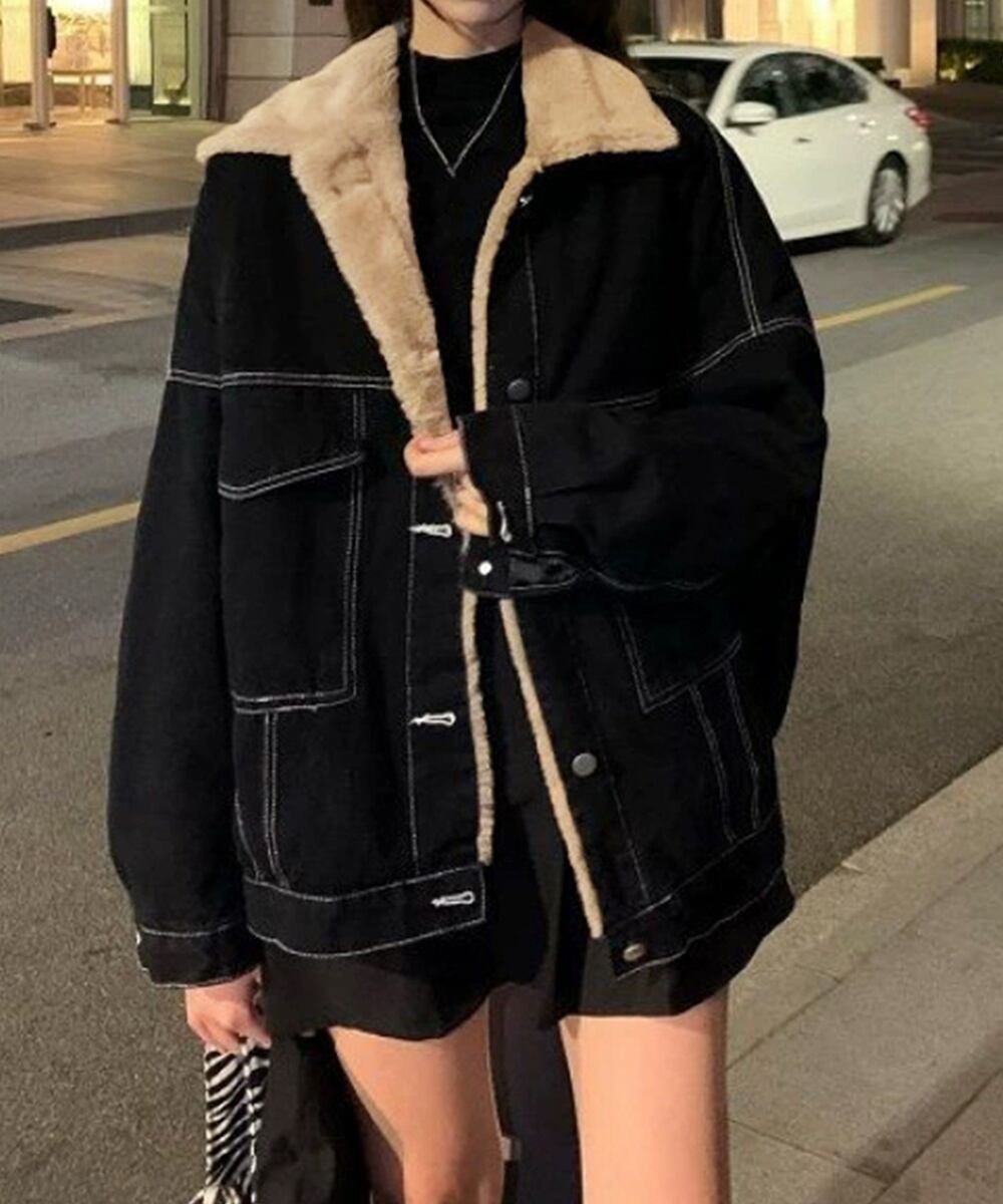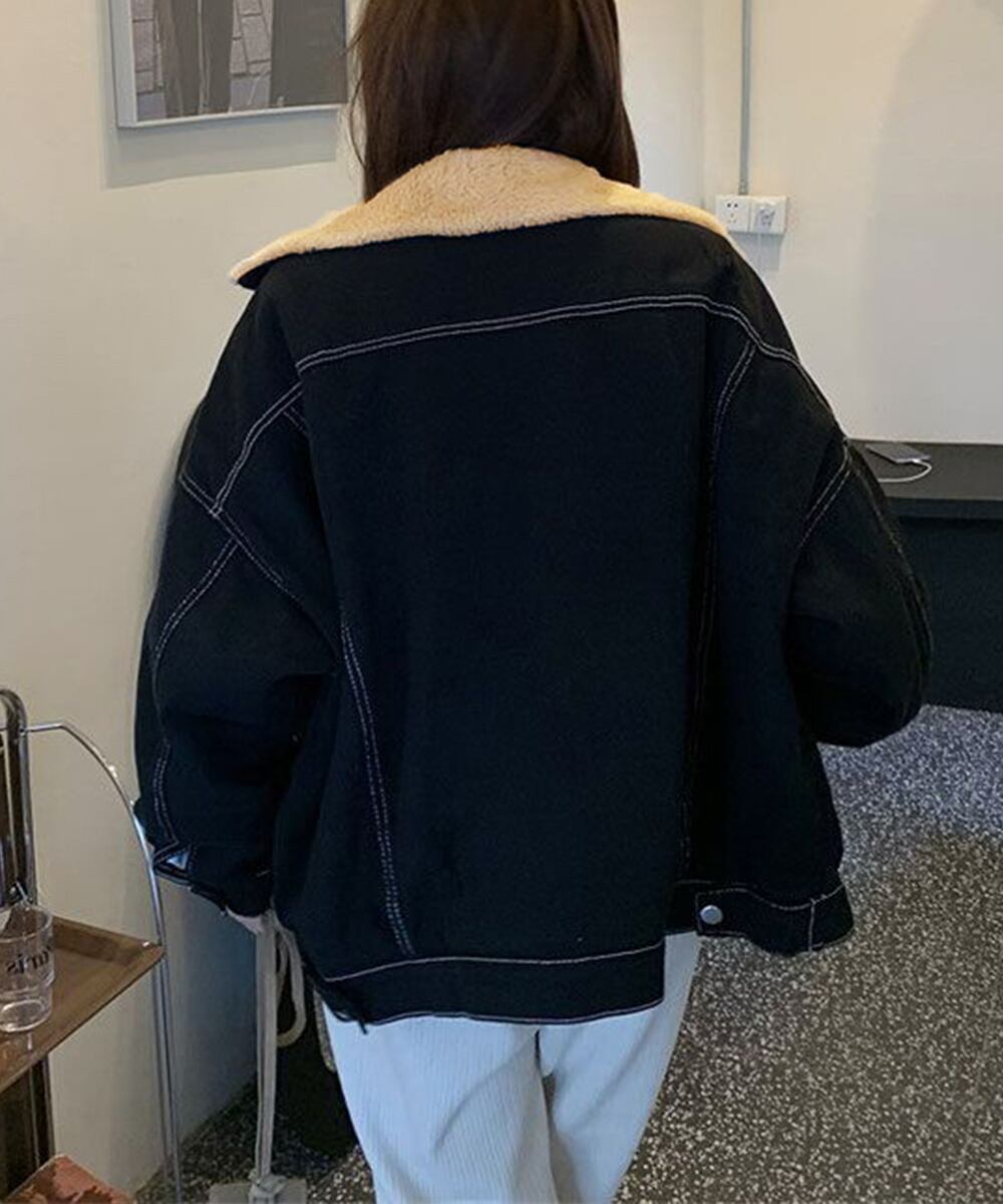 裏起毛デニムGジャン 韓国風 ふわふわ裏ボアアウター あったか もこもこインナーファーデニムコート 体型カバー 防寒防風