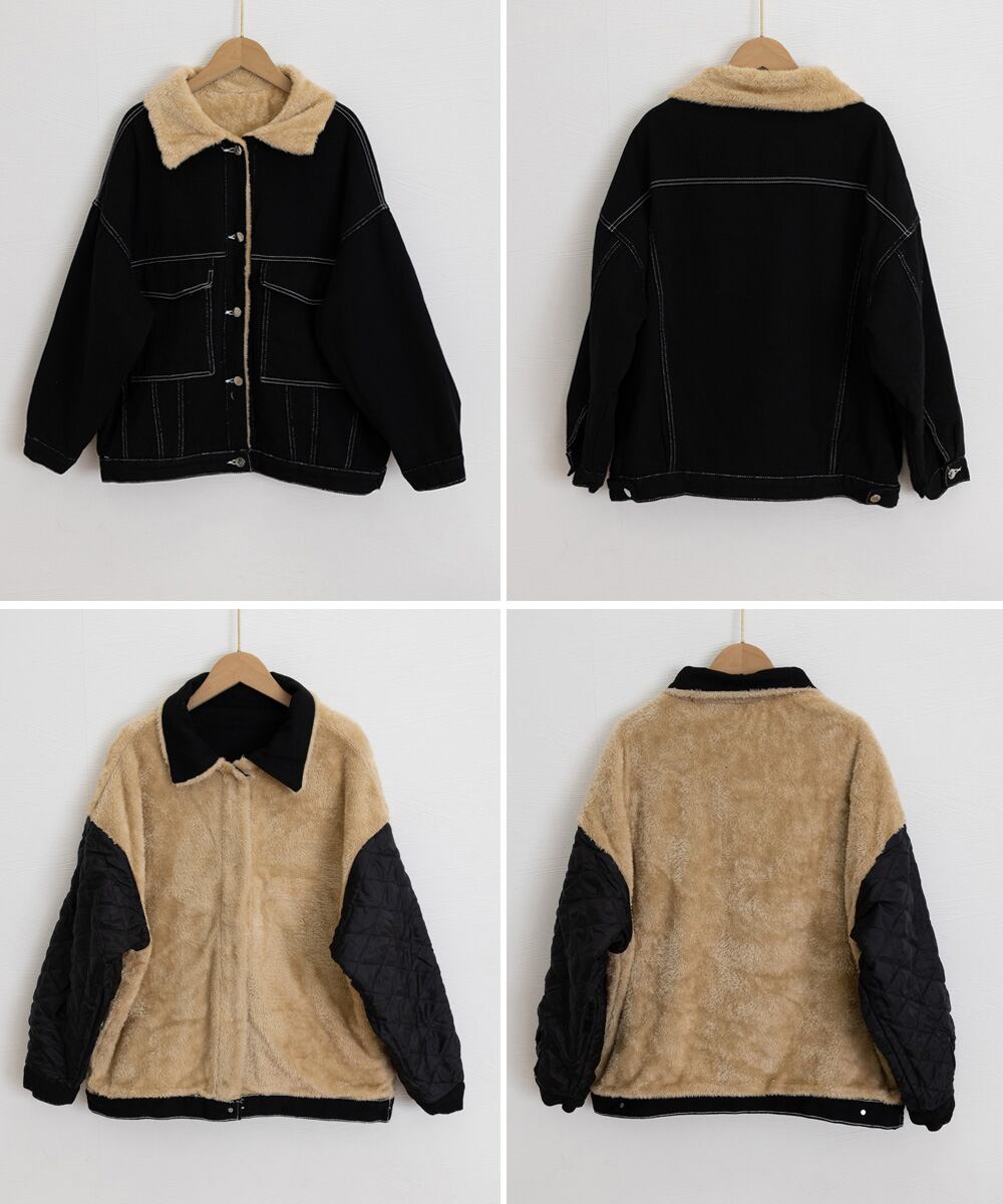 【日本倉庫即納】 裏ファーデニムジャケットステッチブルゾン
