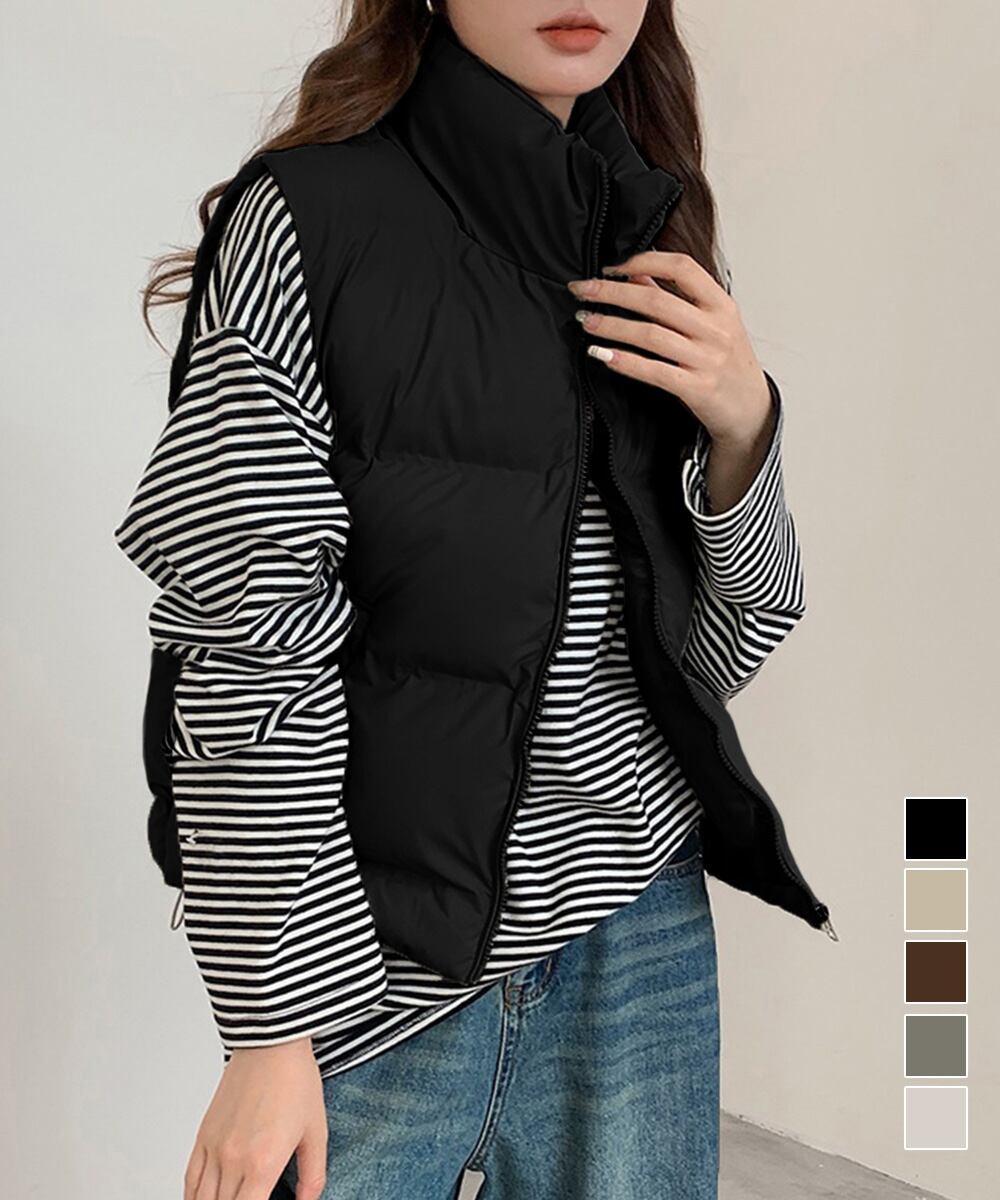 スタンドカラー暖かい 中綿ベスト ポケット付き ショート丈エコダウンベスト フェイクダウンジャケットノースリーブ 韓国風