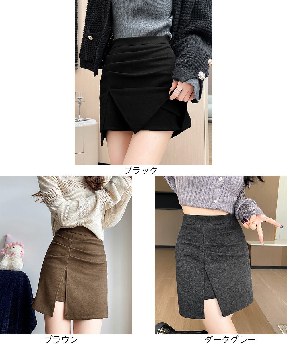 【日本倉庫即納】 ギャザーミニスカート 無地タイトスカート