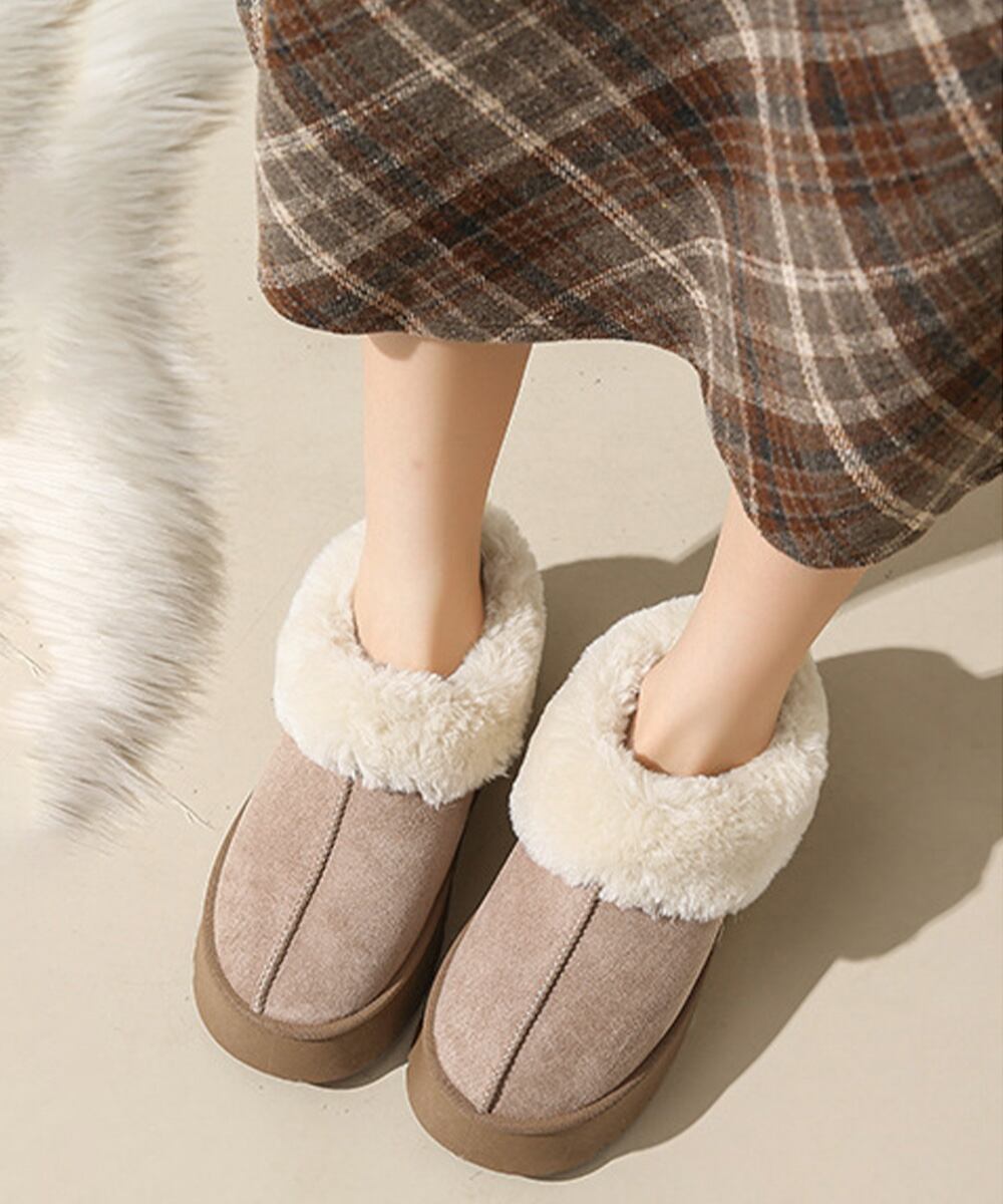 履きやすい暖かいボアブーツ 歩きやすい裏起毛ムートンスリッポン ふわふわモカシン 保温防寒靴 大人可愛いあったかシューズ