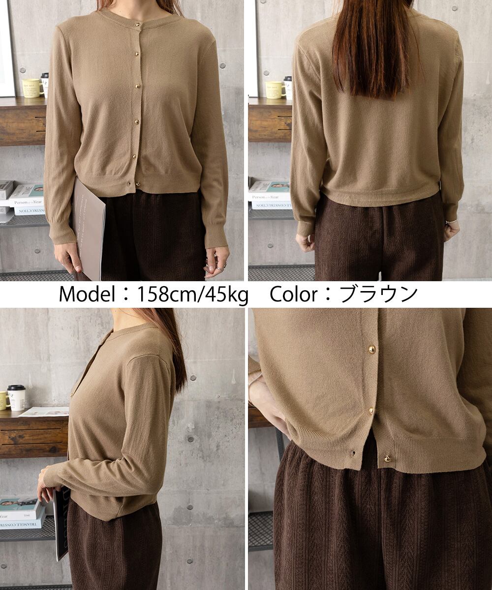 上品な印象のゴールドボタンがポイントのベーシックカーディガン。