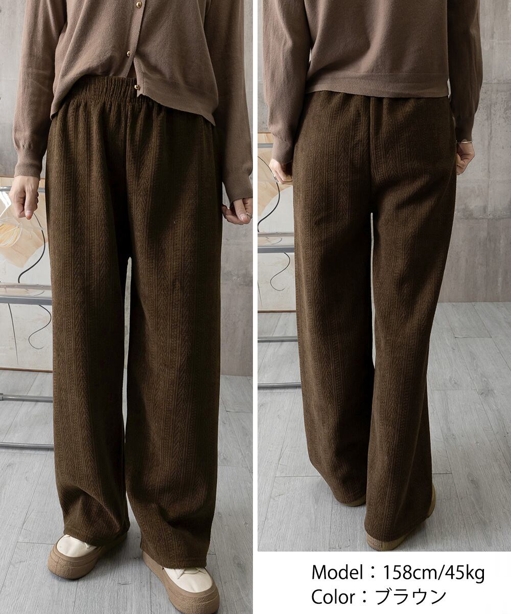【日本倉庫即納】 裏起毛ワイドパンツ あったかニットパンツ