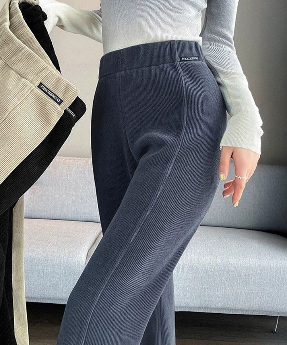 ハイウエストあったかパンツ レディース 防風防寒フロントスリットパンツ 暖かいズボン 美脚脚長秋冬ボトム イージーパンツ