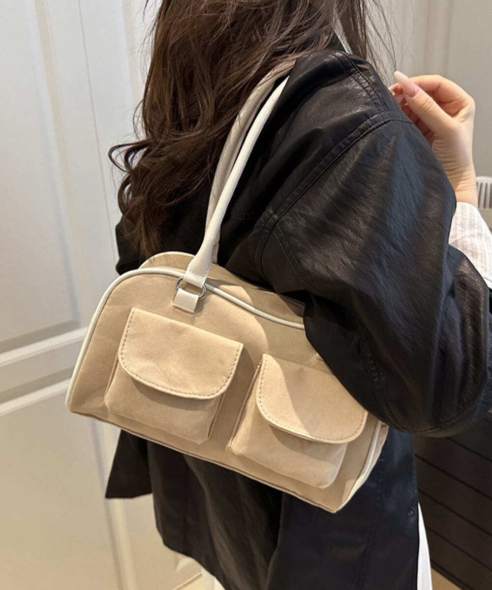 レディース 肩掛けカバン 無地バッグ ポケット付き 大人 おしゃれ レトロ シンプル 韓国風