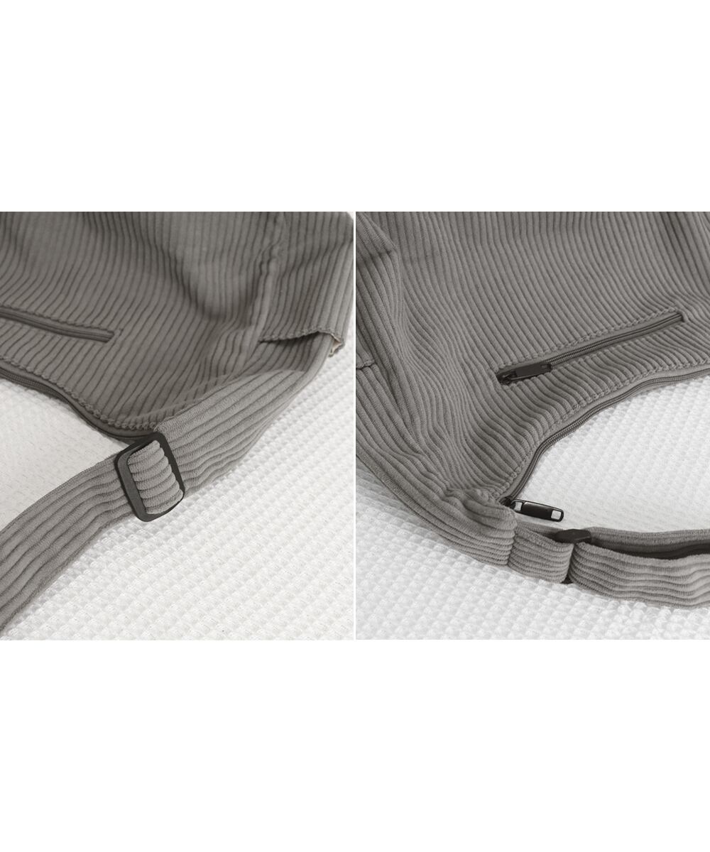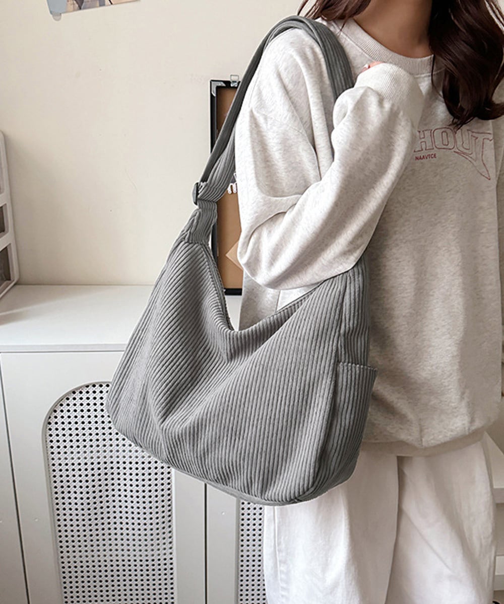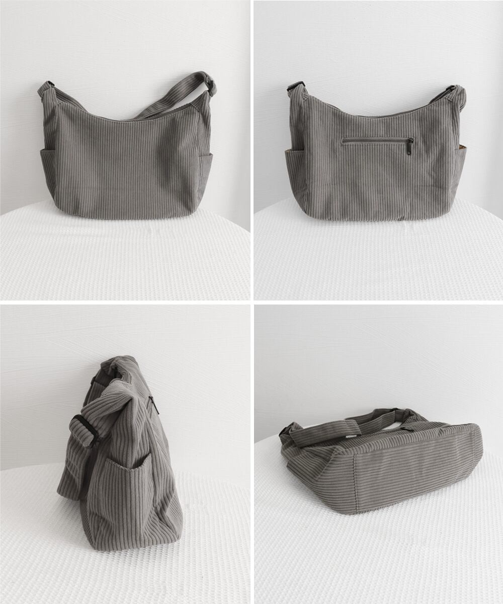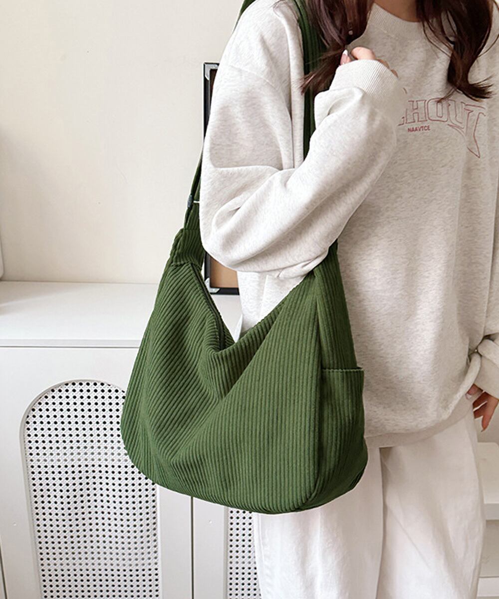 シンプルなデザイン、ベーシックカラーのコーデュロイショルダーバッグ。