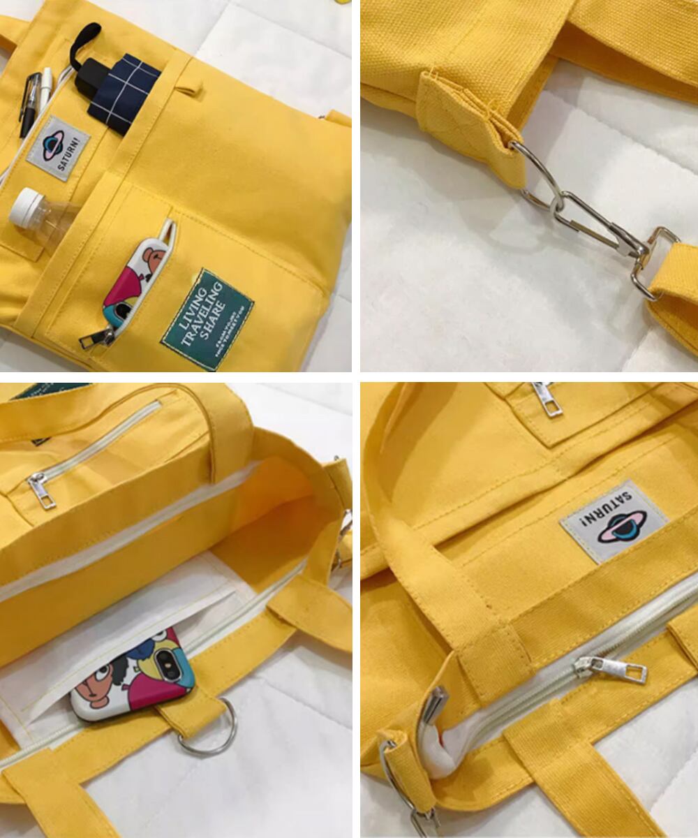 帆布かばん 韓国風 ロゴトート学生旅行 デイリーバッグ白黒
